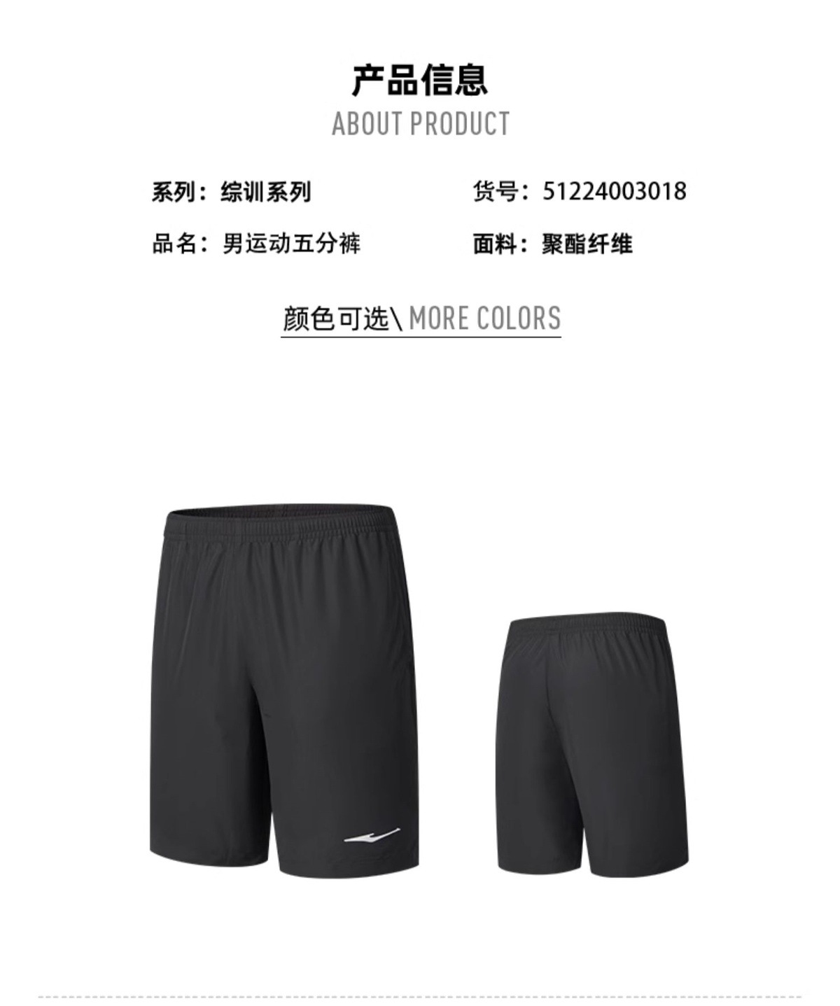 Hongxing Erke 스포츠 반바지 남성 여름 피트니스 얼음 느낌 속건성 바지 얇은 훈련 통기성 반바지 5부 바지