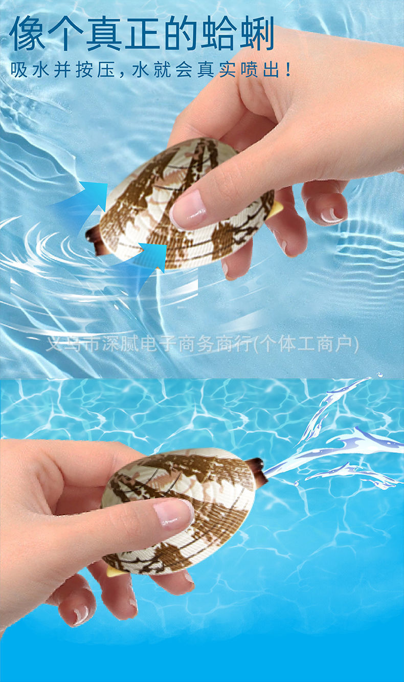 물을 뿜어 장난을 칠 수 있는 모조 조개 물총, 물을 토하는 조개 물총, 조개 물총, 수영장 장난감스토어 가기