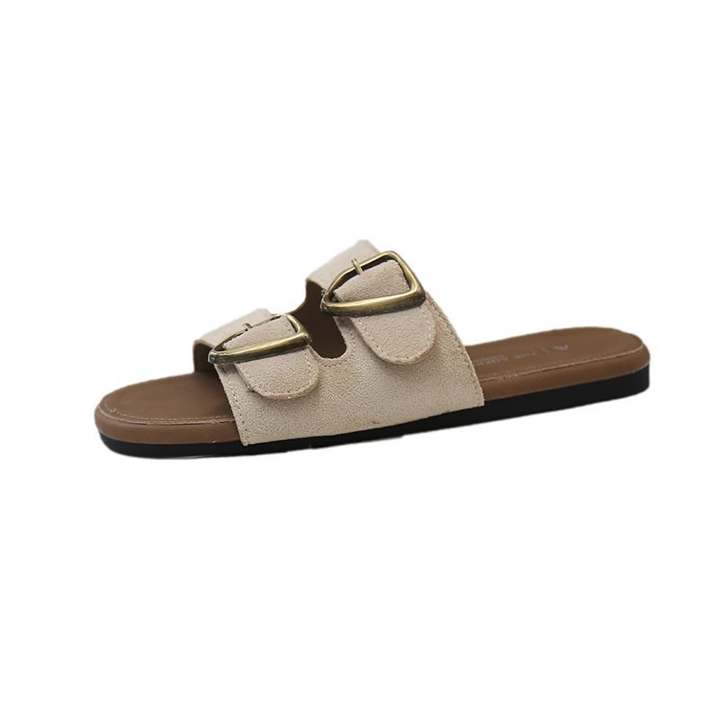 세련된 간단한 벨트 버클 로마 외부 착용 샌들 레트로 신발 여성 여름 슬리퍼 플랫 슬리퍼 멋진 핑크스토어 가기