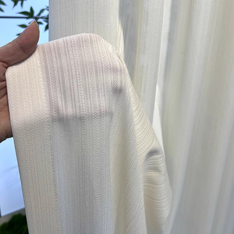 추천하다! 크림색 줄무늬 거즈 커튼 프렌치 자외선 차단 침실 거실 발코니 창 스크린은 빛을 투과하고 방열되지 않습니다.
