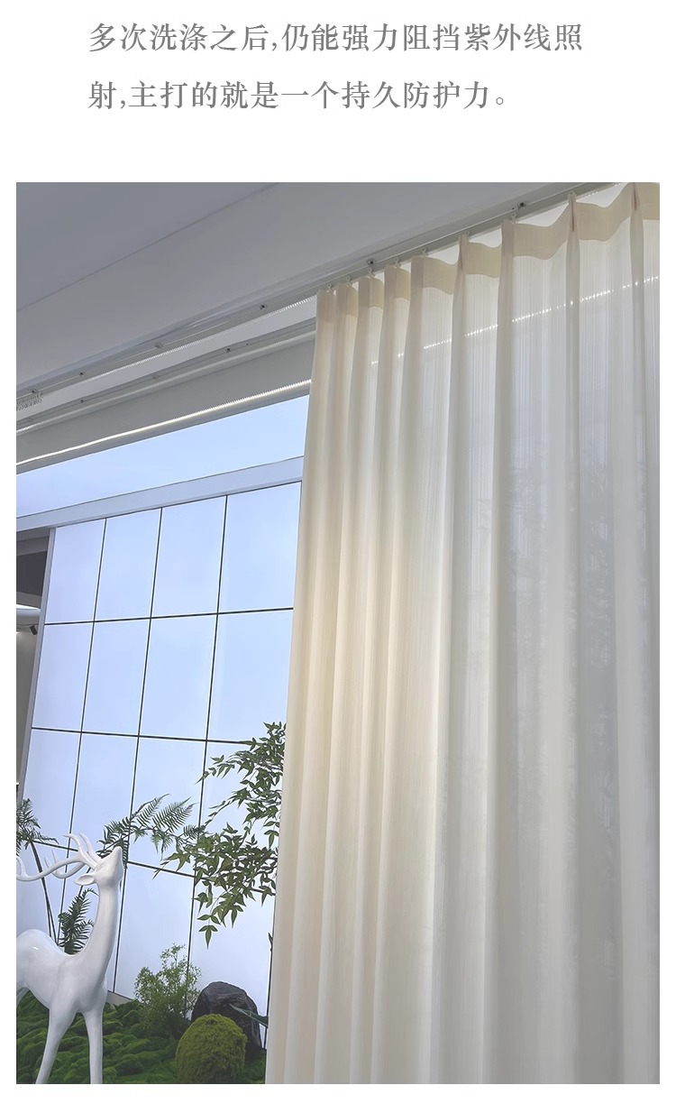 추천하다! 크림색 줄무늬 거즈 커튼 프렌치 자외선 차단 침실 거실 발코니 창 스크린은 빛을 투과하고 방열되지 않습니다.스토어 가기