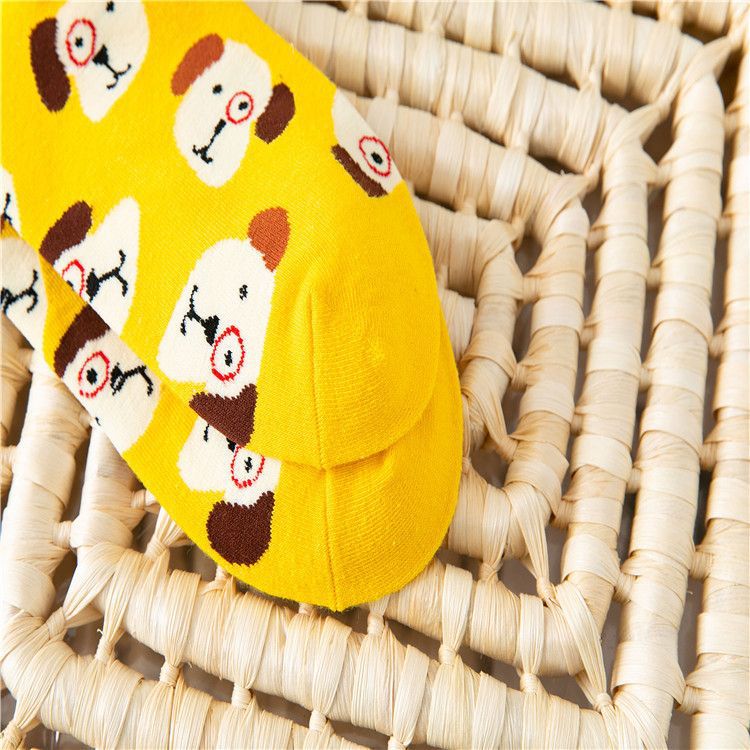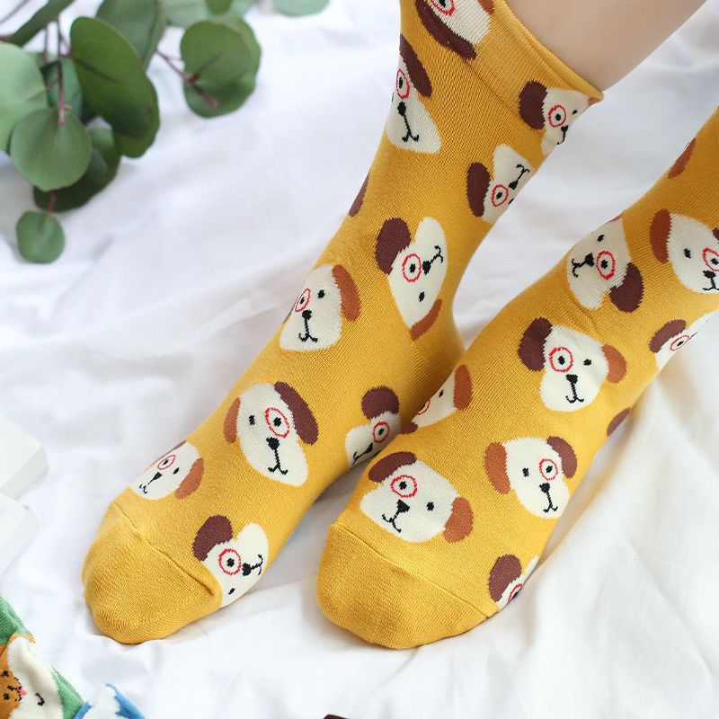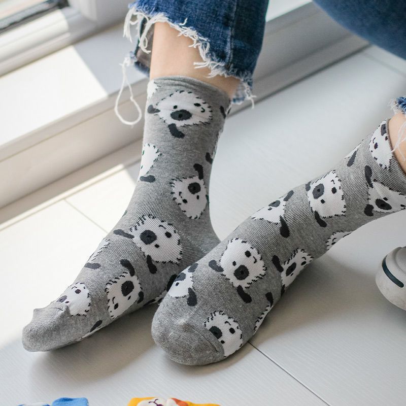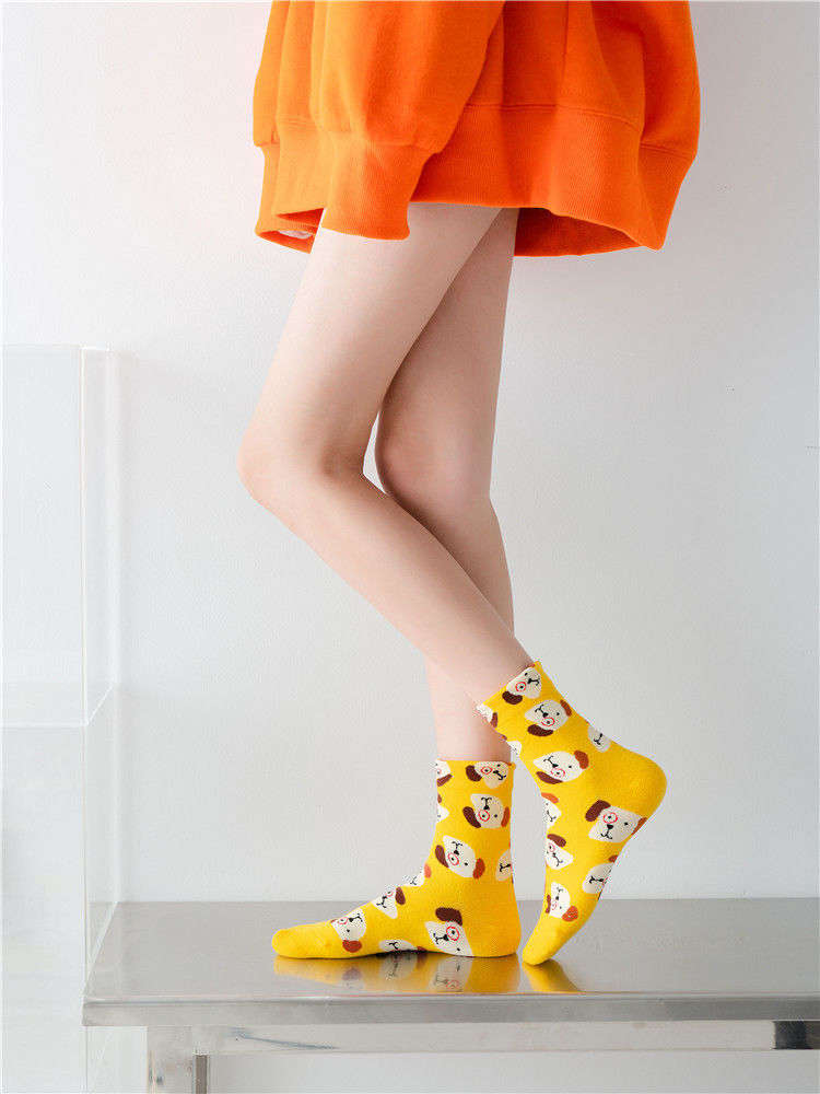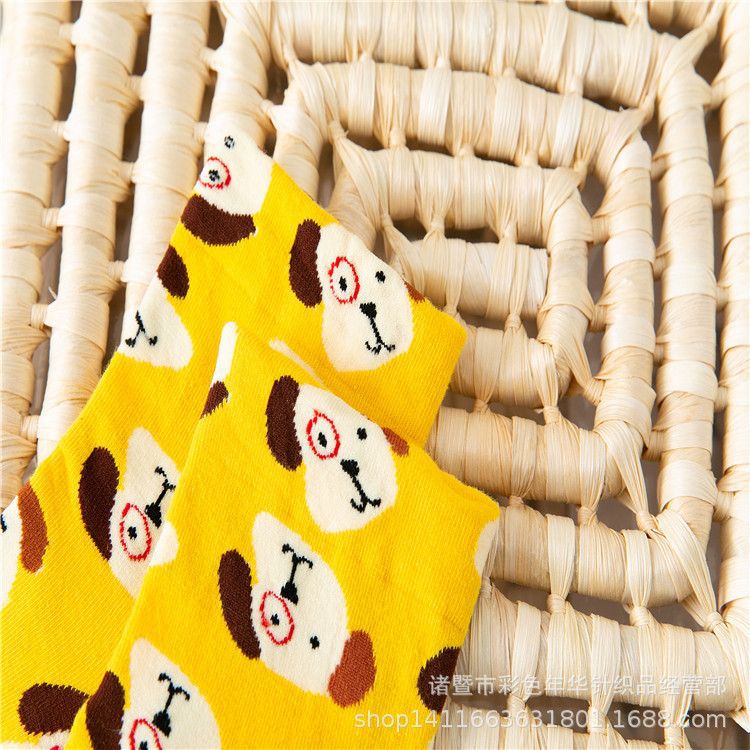 Zhuji 양말 여성용 종아리 중간 양말 봄과 가을 귀여운 만화 개 양말 일본식 한국어 버전 다목적 대학 스타일