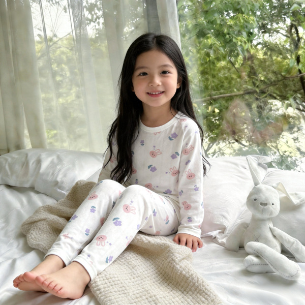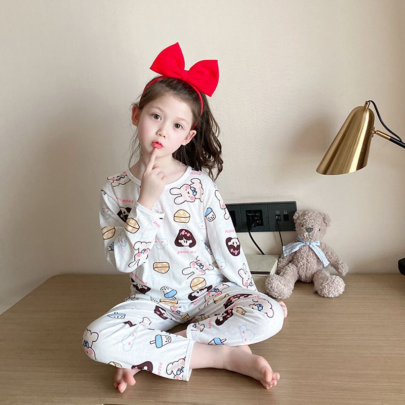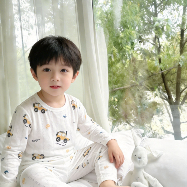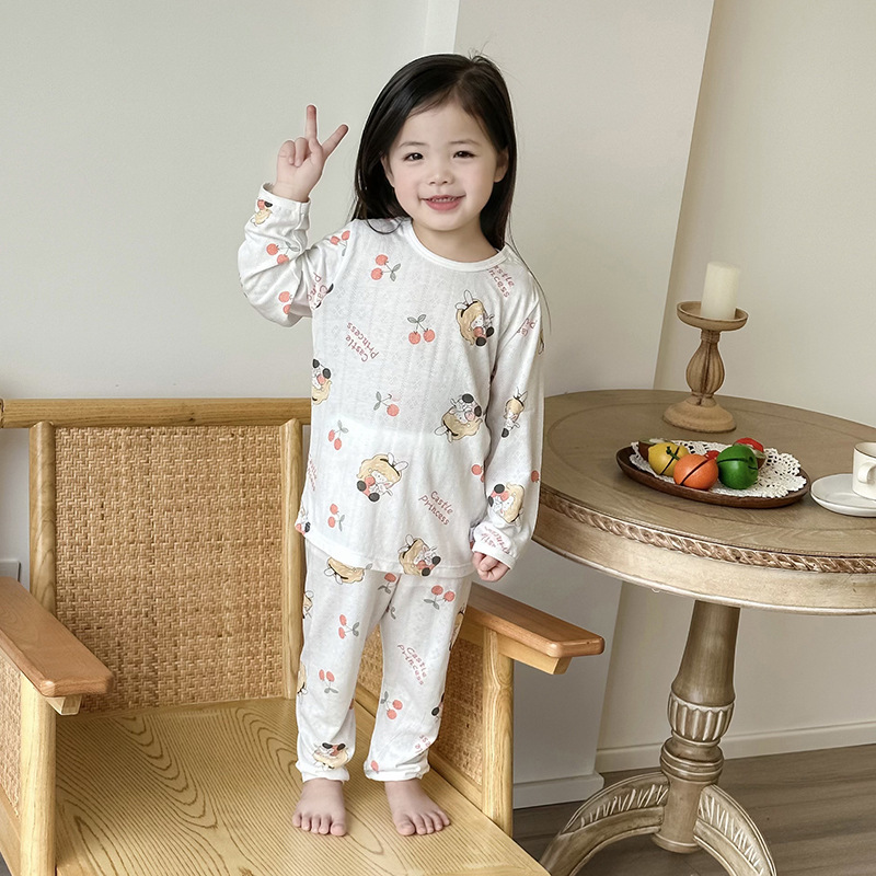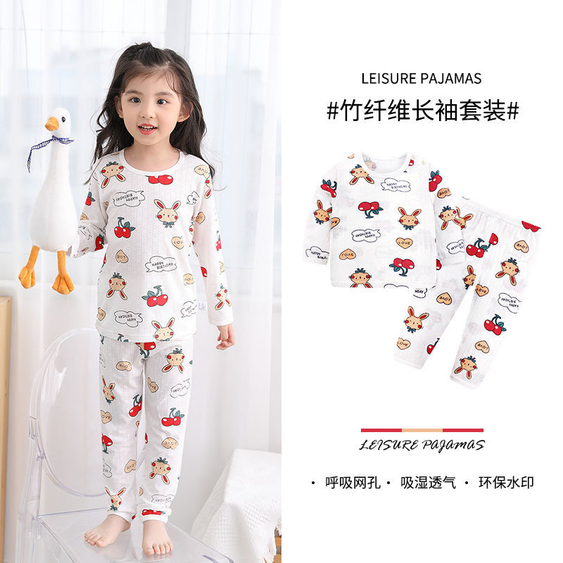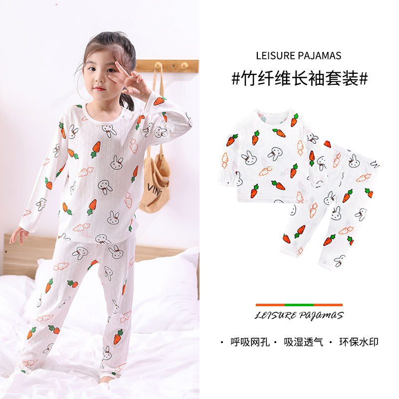 베이비 홈 에어컨 의류 여름 대나무 섬유 긴팔 세트 아기 소년 및 소녀 잠옷 클래스 통기성 땀 흡수성