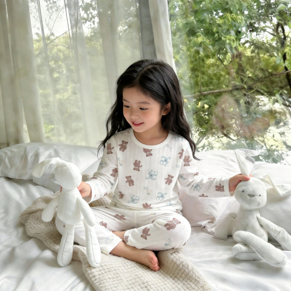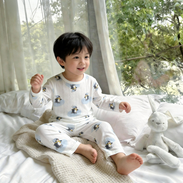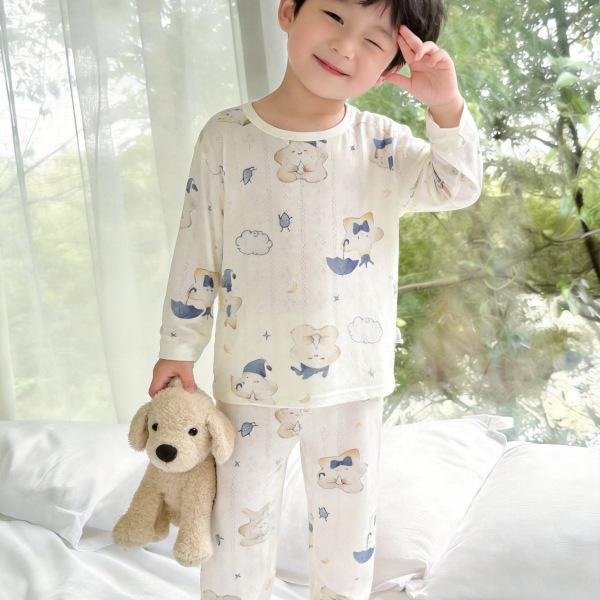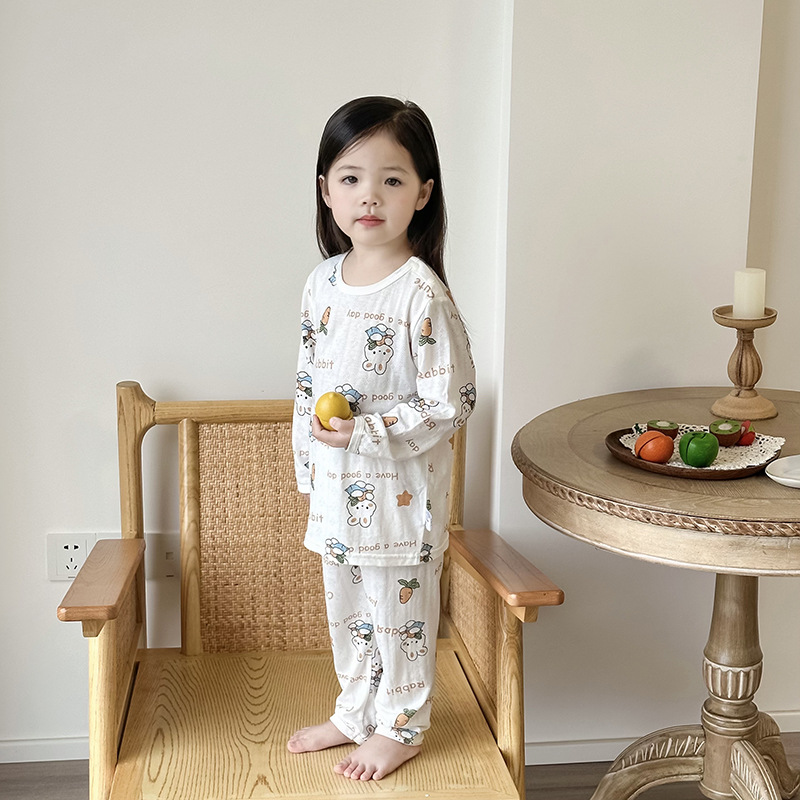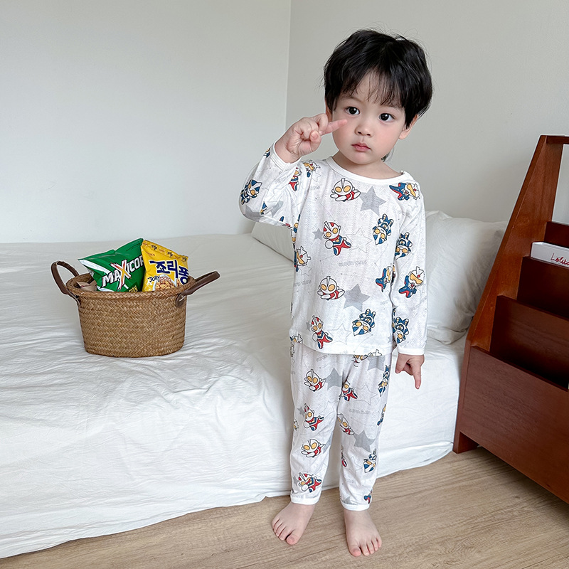베이비 홈 에어컨 의류 여름 대나무 섬유 긴팔 세트 아기 소년 및 소녀 잠옷 클래스 통기성 땀 흡수성스토어 가기