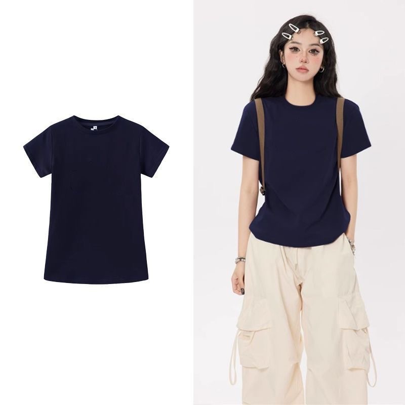 면 기본 어깨 반팔 티셔츠 여성 여름 2025 새로운 라운드 넥 슬림 핏 슬리밍 학생 캐주얼 탑스토어 가기