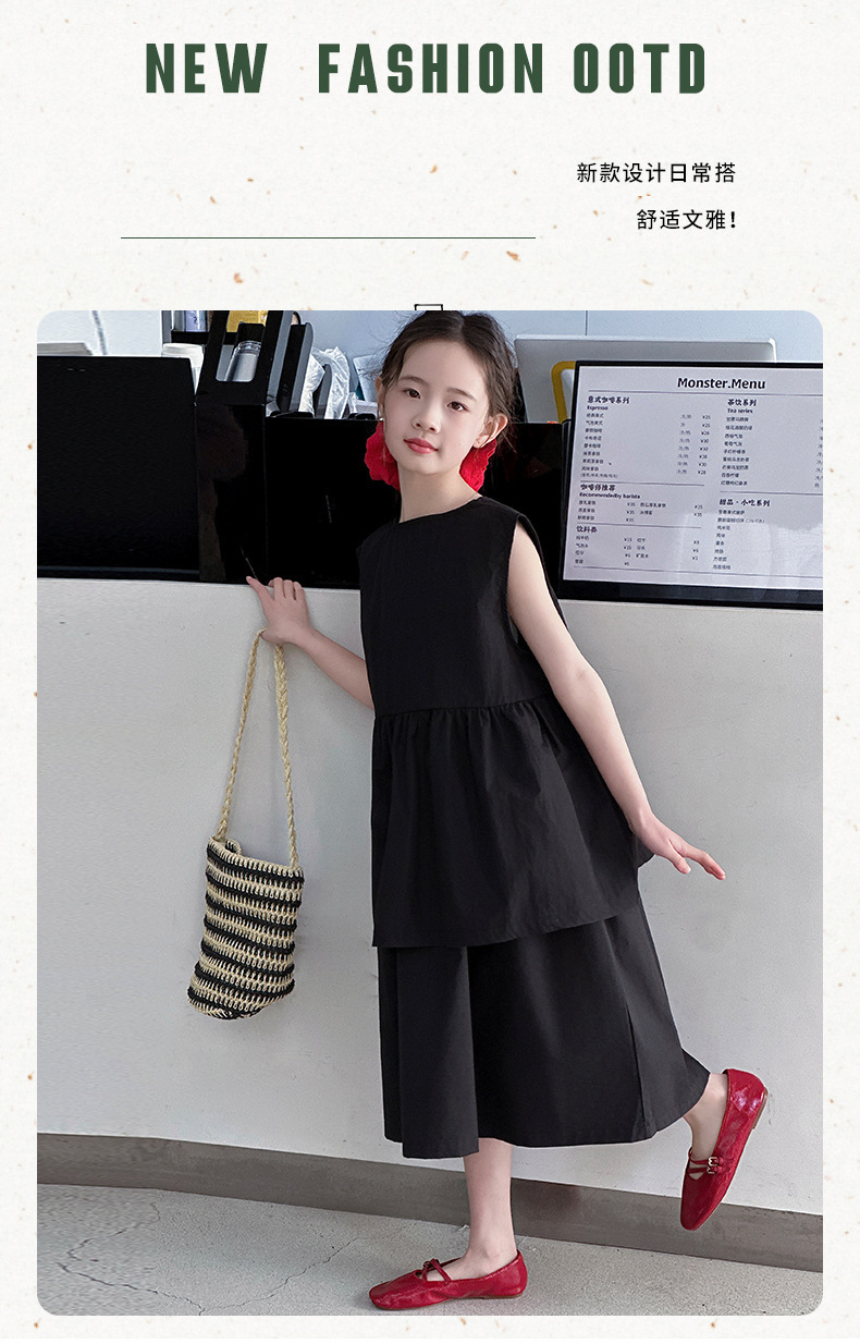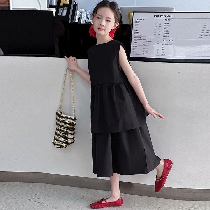 새로운 스택 2025 착용 여자 세련된 여자 여름 원피스 민소매 원피스 패션 크로스-국경 중간 및 큰 키즈 패션