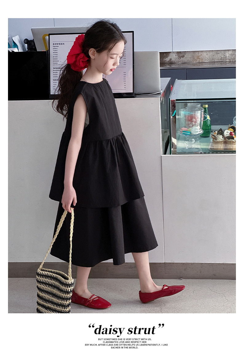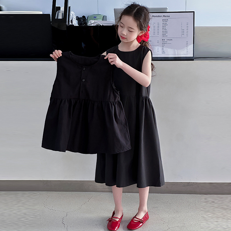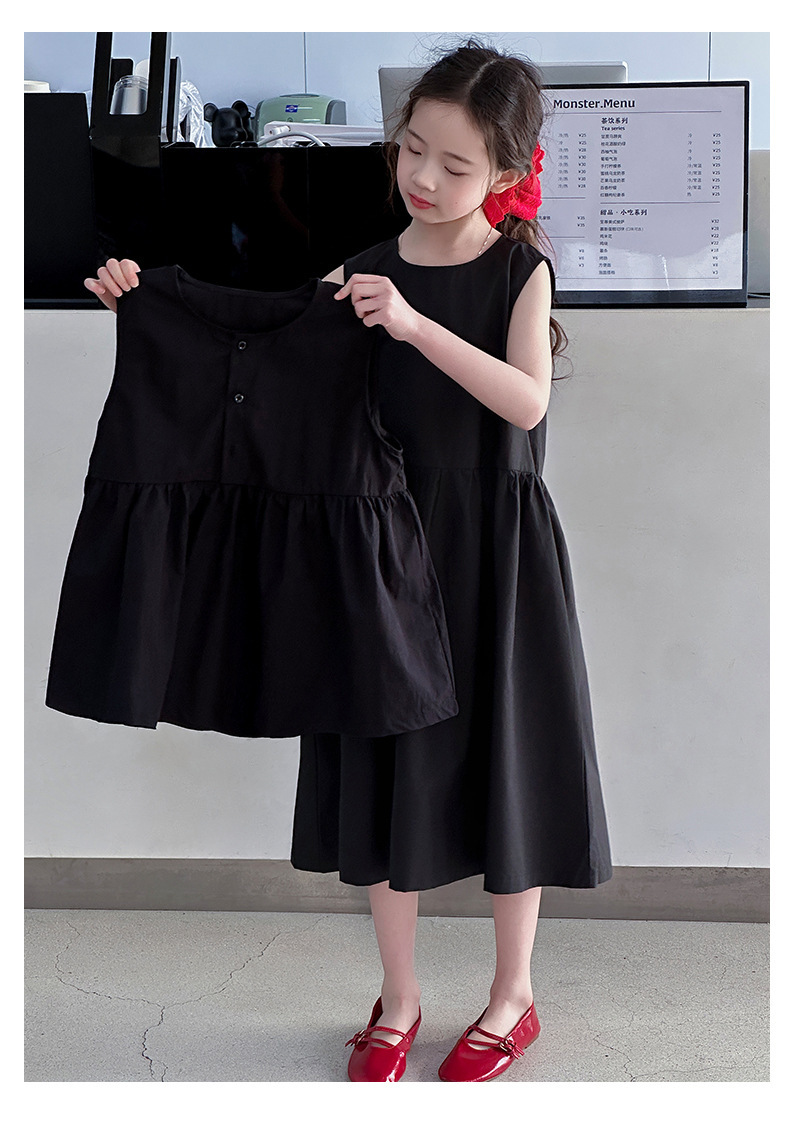 새로운 스택 2025 착용 여자 세련된 여자 여름 원피스 민소매 원피스 패션 크로스-국경 중간 및 큰 키즈 패션스토어 가기