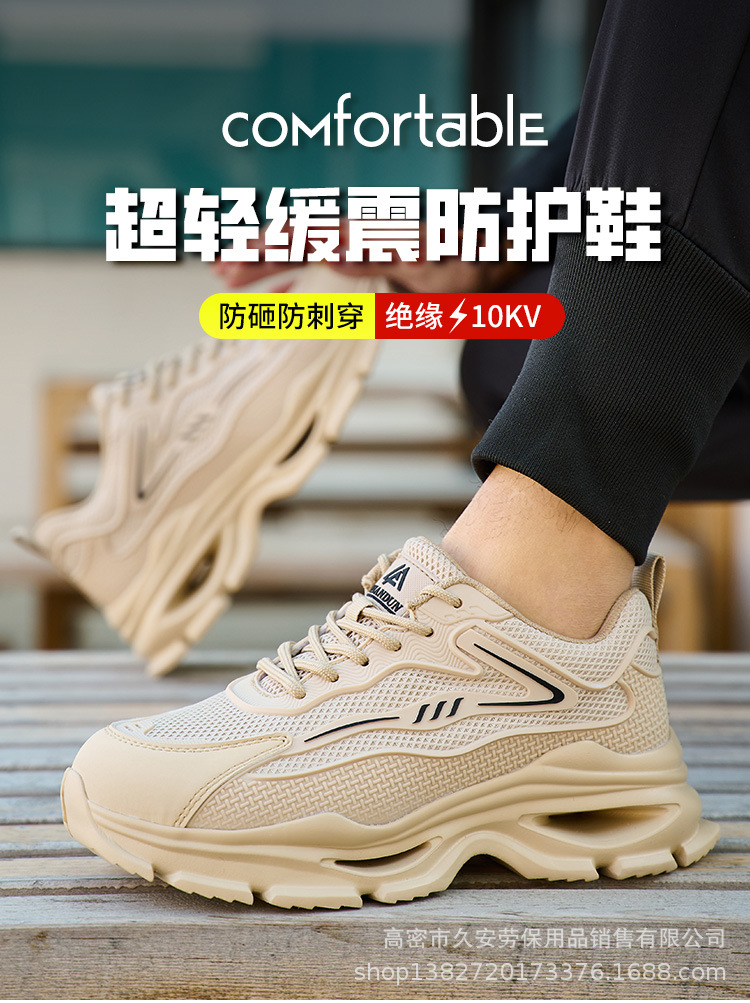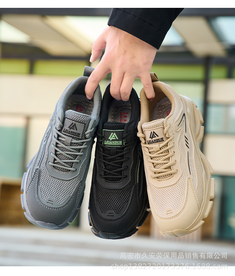 Lei Anshen 2025 남성용 새로운 초경량 쿠셔닝 노동 보호 신발, 여름 통기성, 탈취제, 플라스틱 강철 발가락, 충격 방지 및 펑크 방지