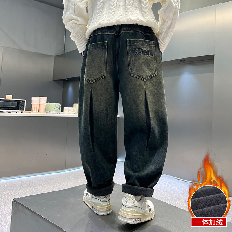 아동복 소년 봄 바지 2025 새로운 봄, 가을, 여름 큰 어린이 소년 캐주얼 데님 바지 봄 트렌드
