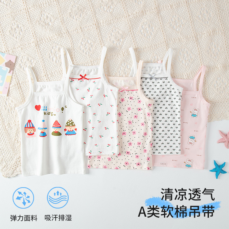 여름 어린이 조끼 라이크라 코튼 만화 인쇄 소녀 코튼 카미 솔베이스 얇은 클래스 작은 조끼 클래스 A