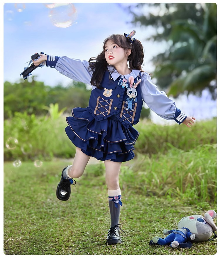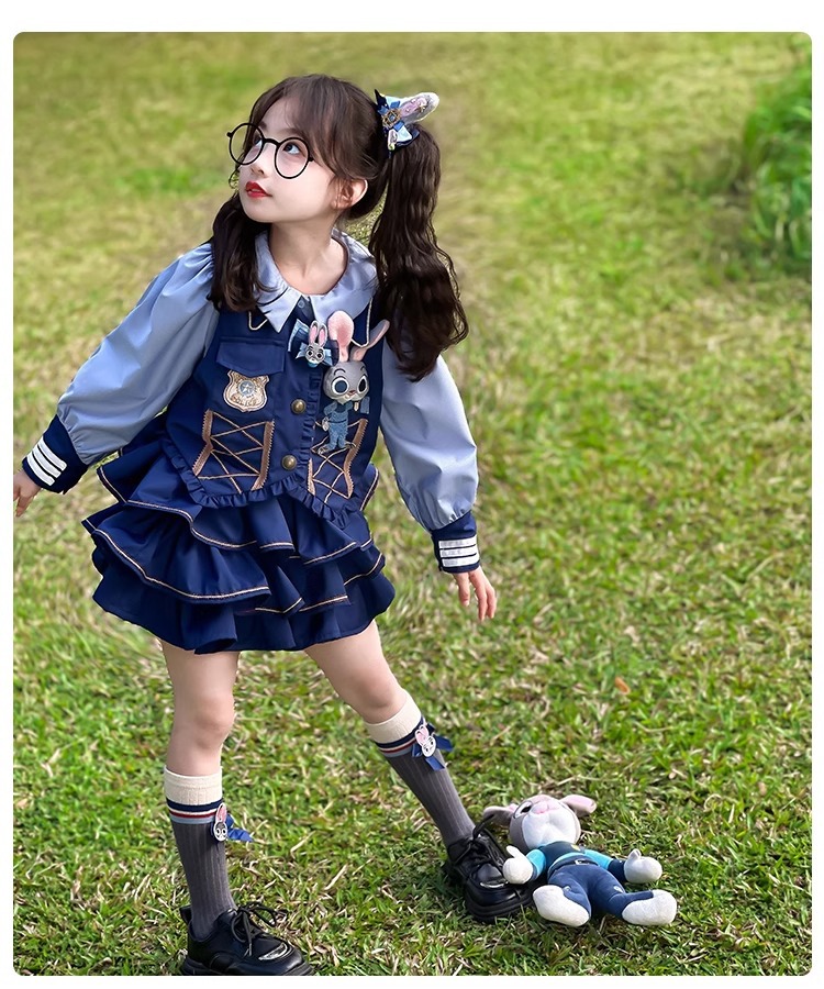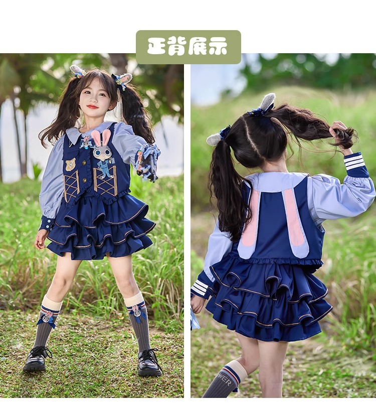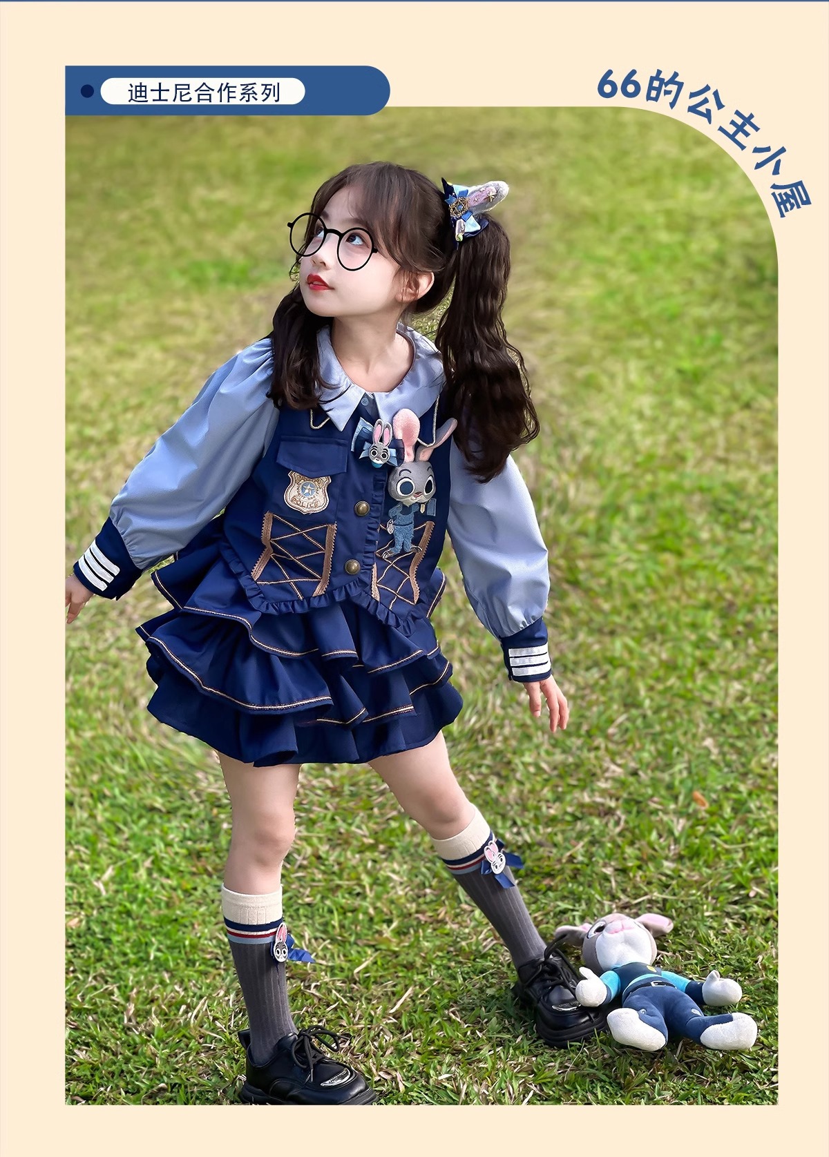 아동복 도매 여아 정장 스커트 봄 가을 2025 신상 토끼 경찰관 조끼 스커트 세련된 3종 세트 6