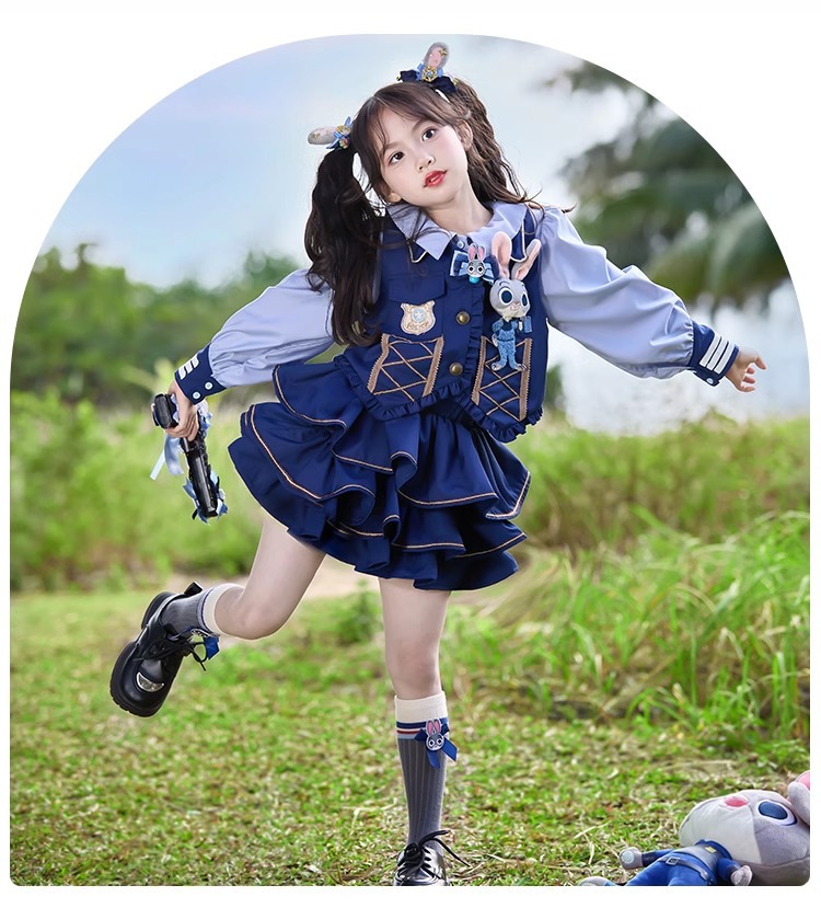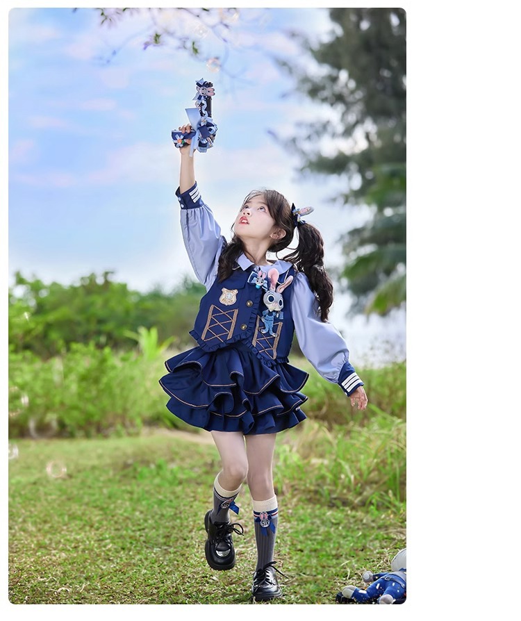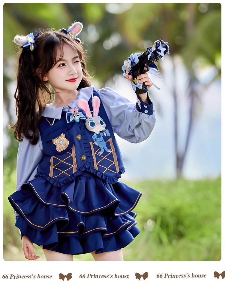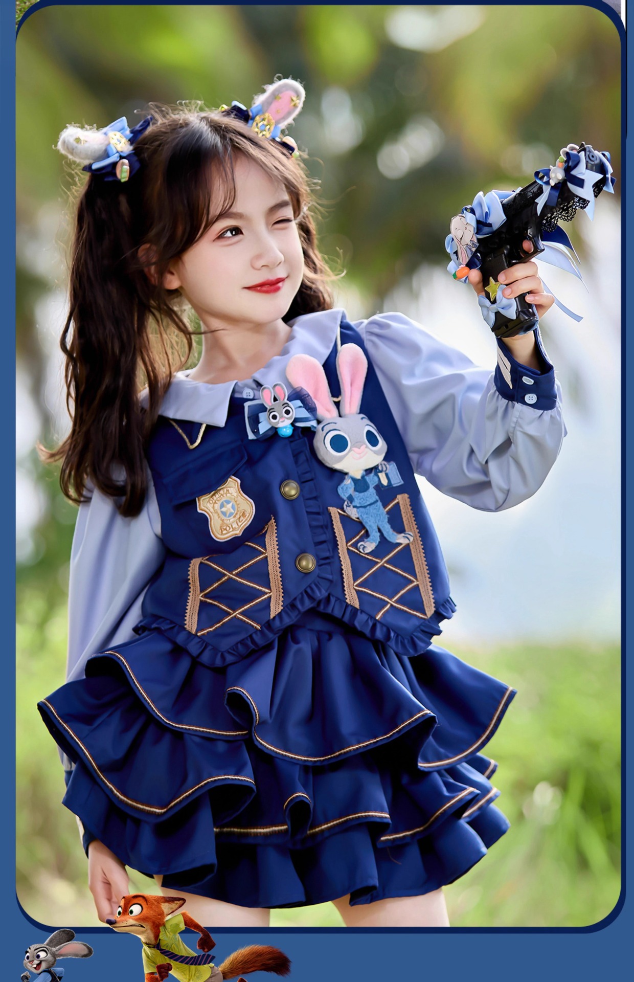아동복 도매 여아 정장 스커트 봄 가을 2025 신상 토끼 경찰관 조끼 스커트 세련된 3종 세트 6