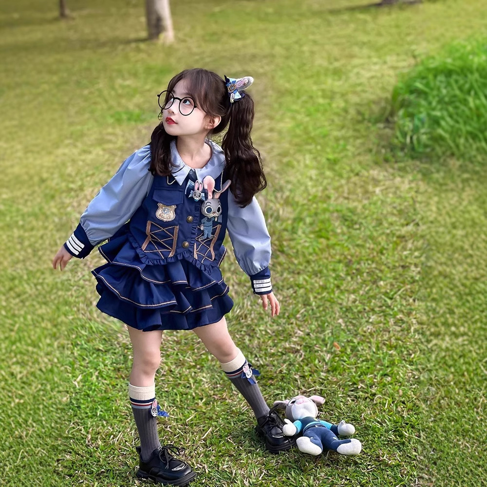 아동복 도매 여아 정장 스커트 봄 가을 2025 신상 토끼 경찰관 조끼 스커트 세련된 3종 세트 6스토어 가기