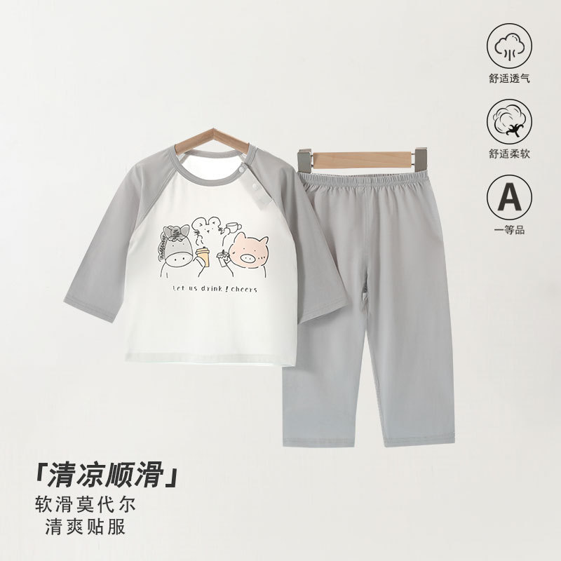 어린 이용 여름 모달 세트 아기 봄과 여름 긴 소매 홈 옷 소년 소녀를위한 느슨한 에어컨 옷 잠옷 얇은스토어 가기