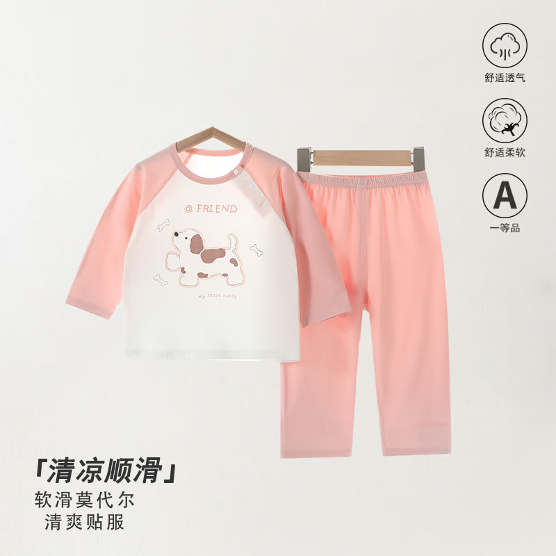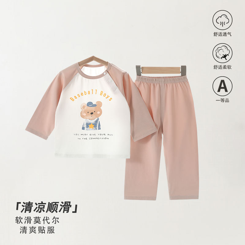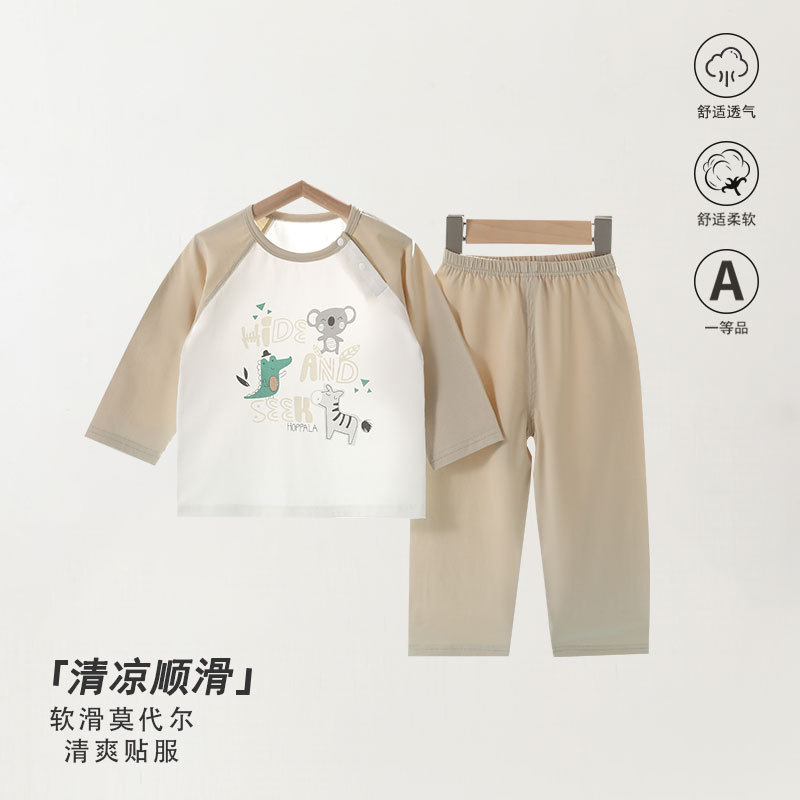 어린 이용 여름 모달 세트 아기 봄과 여름 긴 소매 홈 옷 소년 소녀를위한 느슨한 에어컨 옷 잠옷 얇은