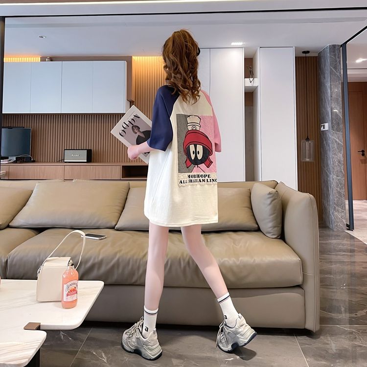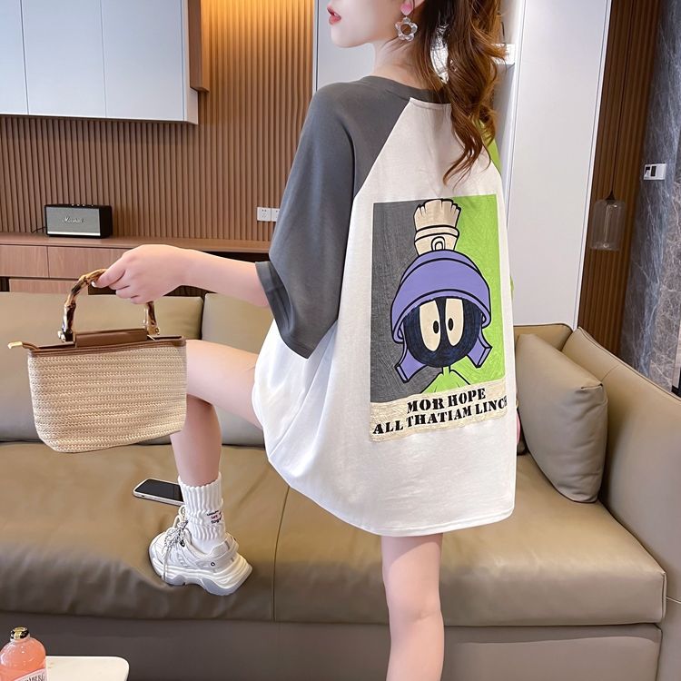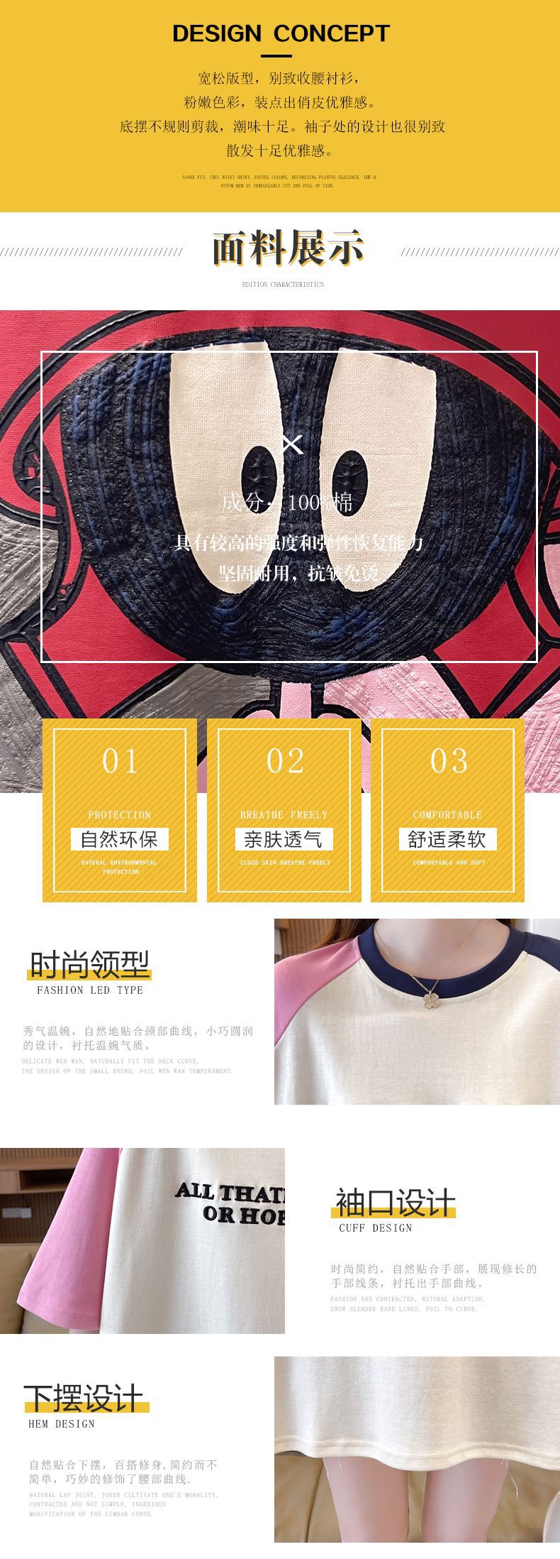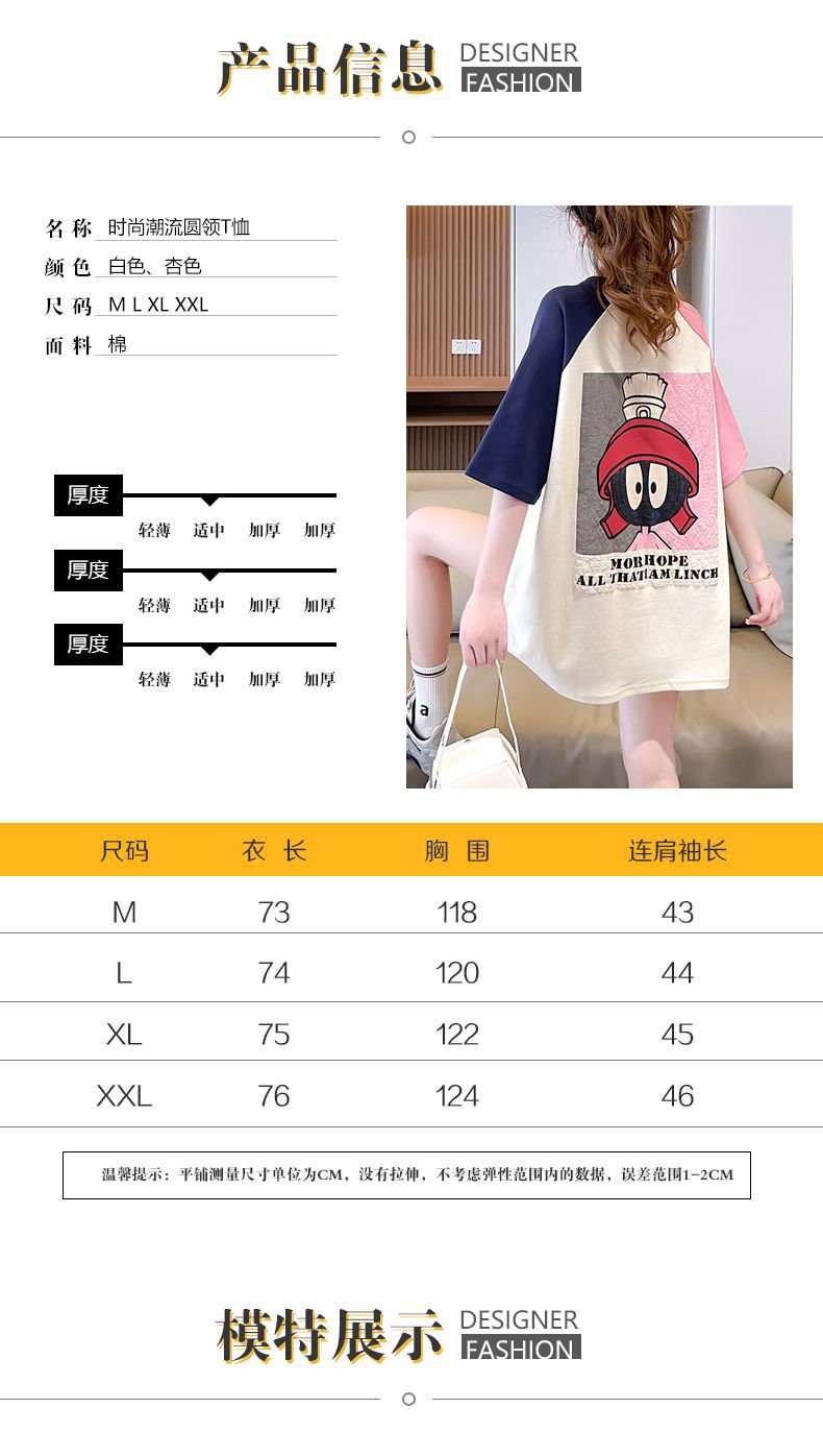 면화 여름 연령 감소 컬러 매칭 반팔 티셔츠 여성 2025 새로운 게으른 스타일 중간 길이의 한국식 탑 트렌디
