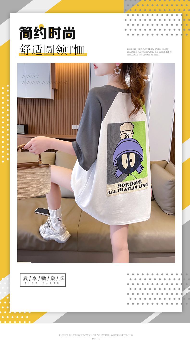 면화 여름 연령 감소 컬러 매칭 반팔 티셔츠 여성 2025 새로운 게으른 스타일 중간 길이의 한국식 탑 트렌디스토어 가기