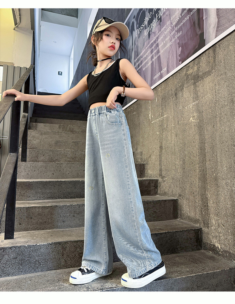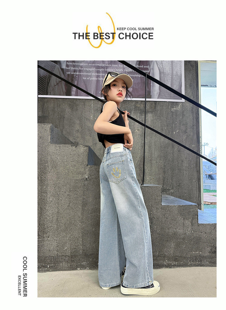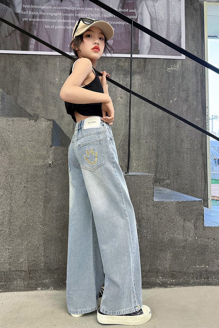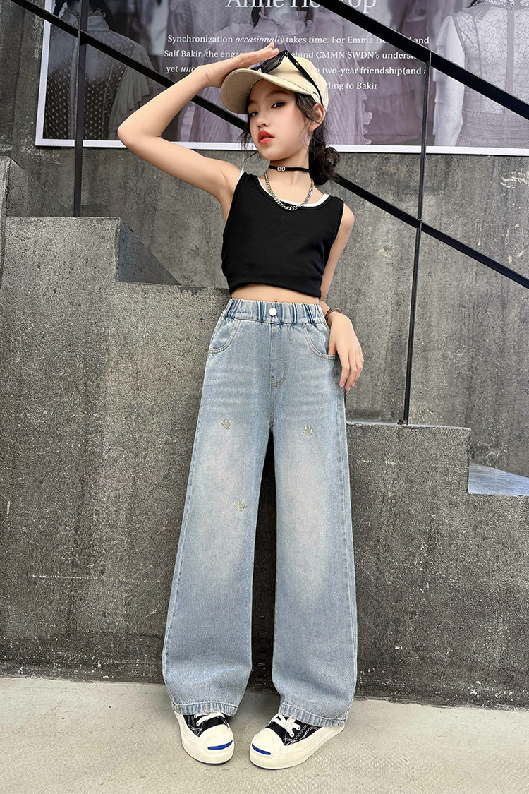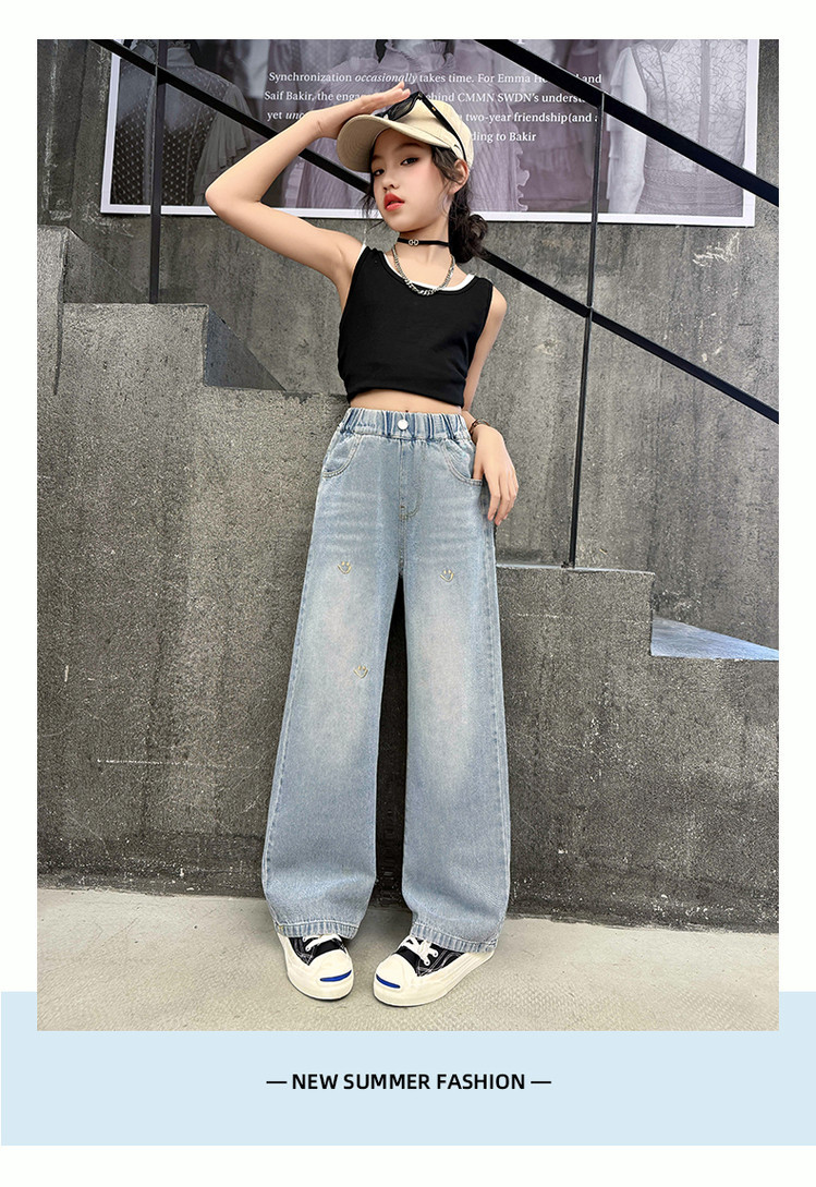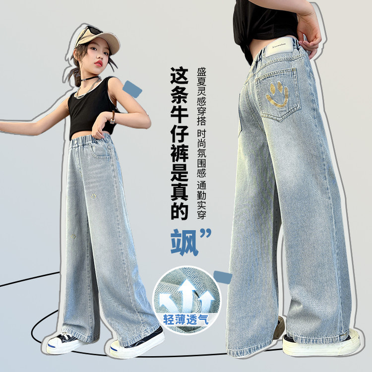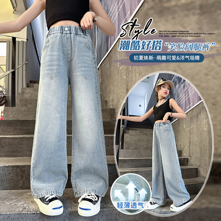 소녀의 바지 여름 얇은 큰 소년 소녀의 여름 패션 캐주얼 느슨한 넓은 다리 바지 어린이 여름 청바지스토어 가기