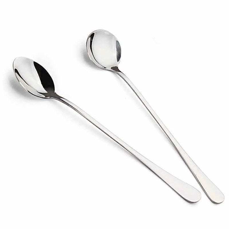 새로운 스테인레스 스틸 긴 손잡이 믹싱 스푼 작은 스푼 조미료 확장 커피 스푼 크리 에이 티브 아이스 스푼 디저트 허니 스푼