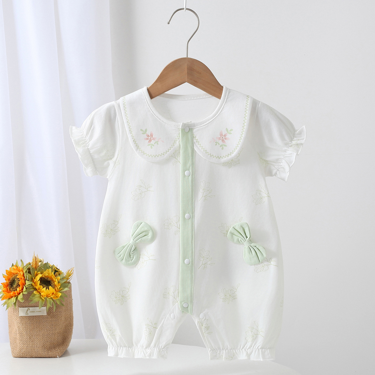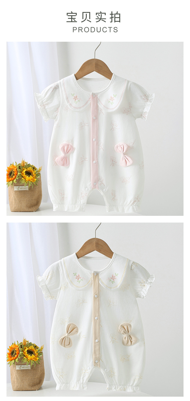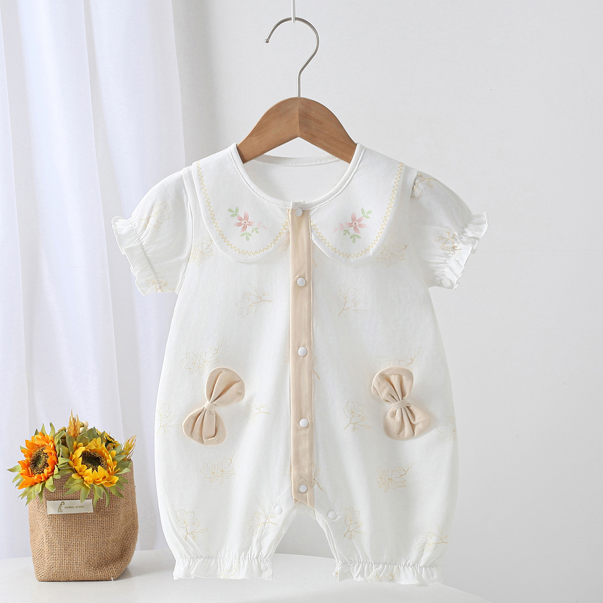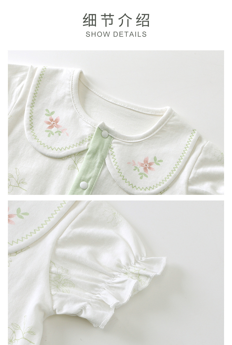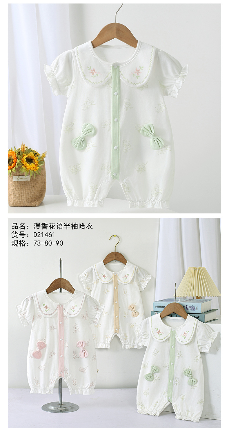 2025 여름 새로운 아기 더블 활 큰 옷깃 점프 수트 만화 패턴 아기 외출