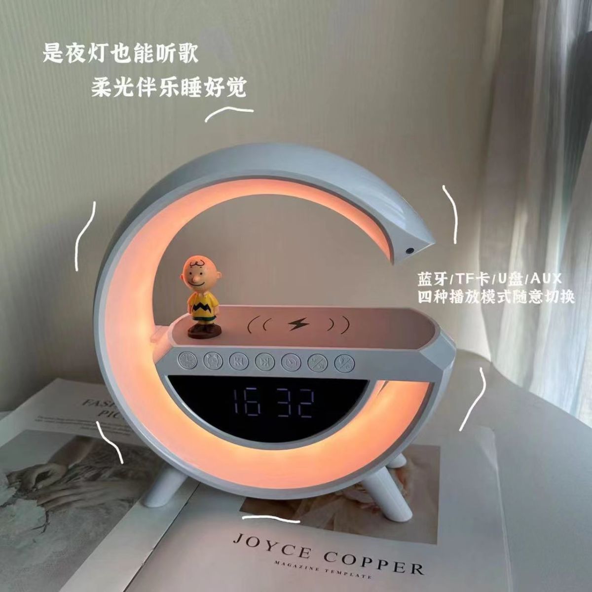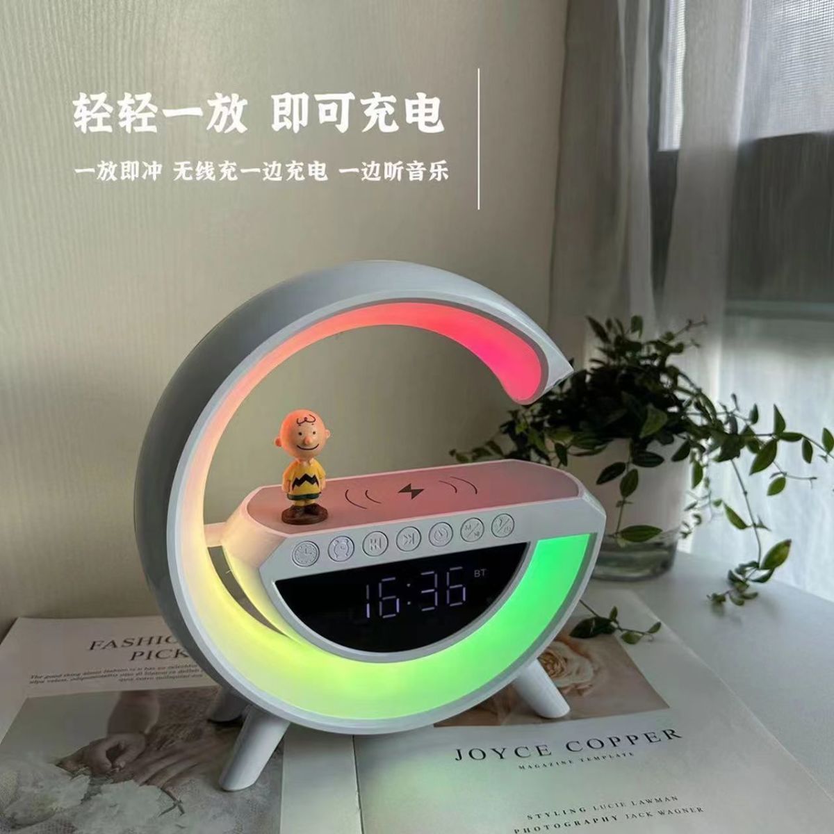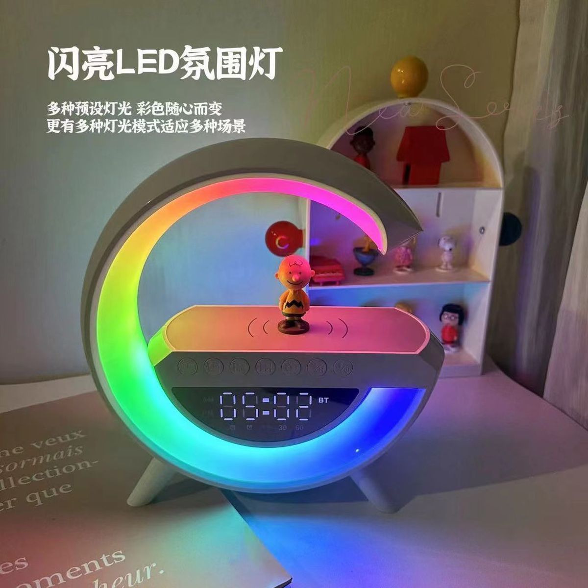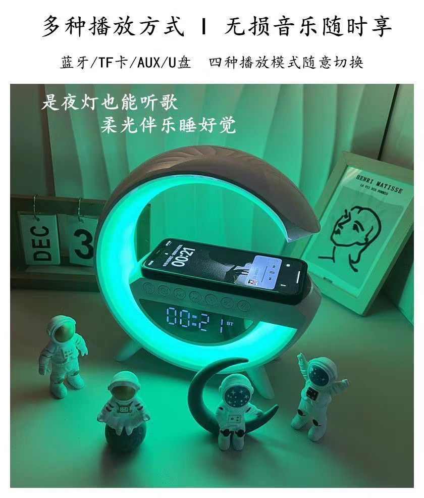 블루투스 스피커 무선 충전 다기능 높은 컬러 나이트 라이트 시계 생일 선물 테이블 램프 주변 사운드