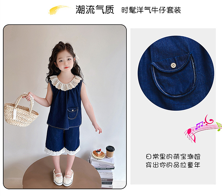 여자 여름 민소매 양복 2025 새로운 어린이 조끼 데님 스타일 투피스 세트 아기 여름 옷 유행스토어 가기