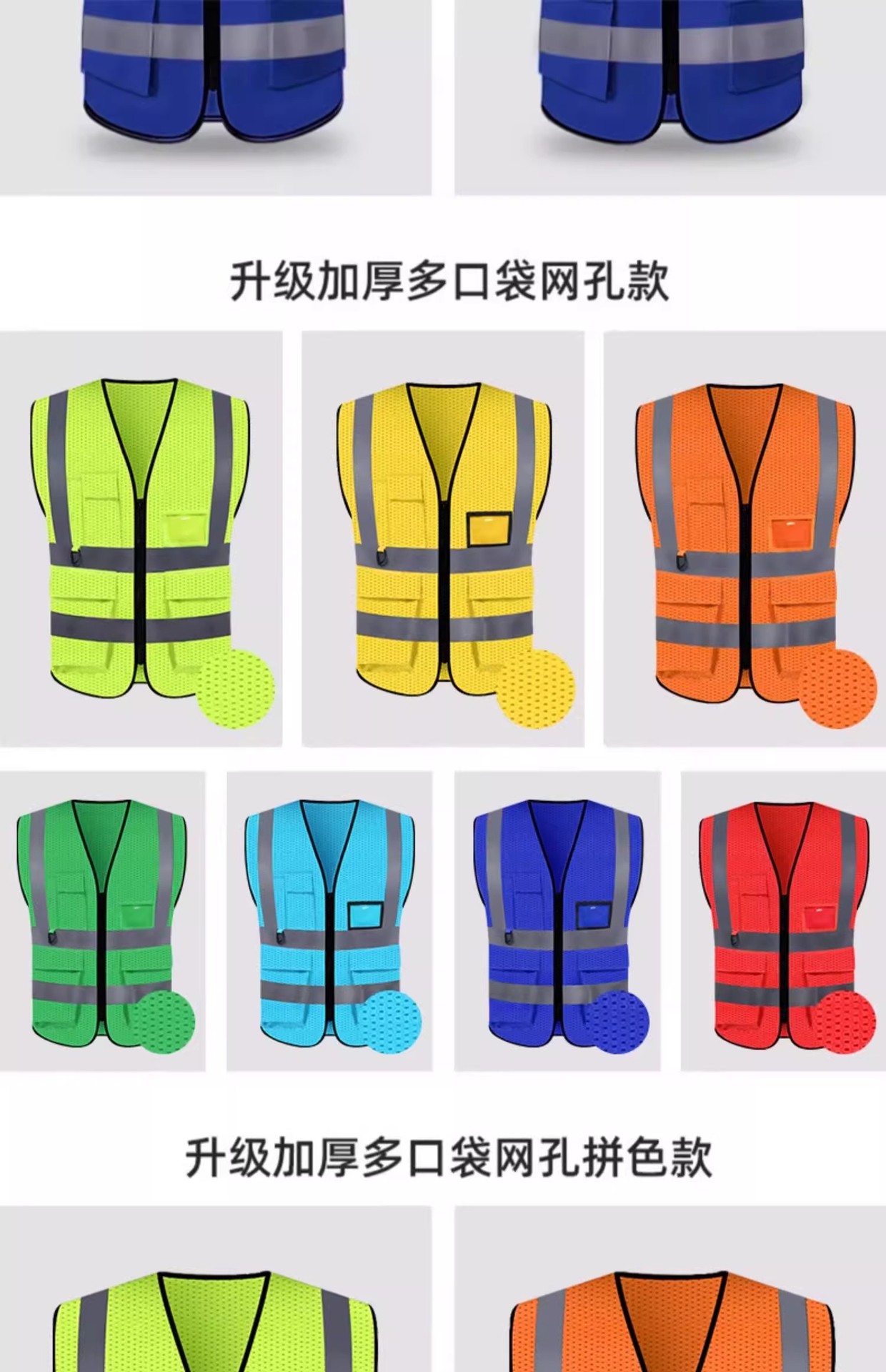 반사 안전 조끼 건설 현장 반사 의류 인쇄 된 의무 보호 위생 작업자 멀티 포켓 반사 조끼스토어 가기