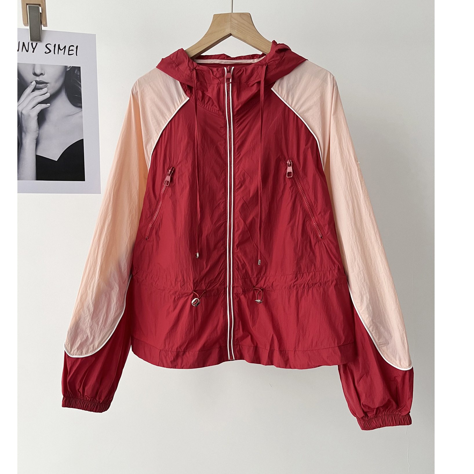 재고 옥 같은 스타일의 빨간색 야외 짧은 코트 허리 반바지 스포츠 세트 여름 세트 착용스토어 가기