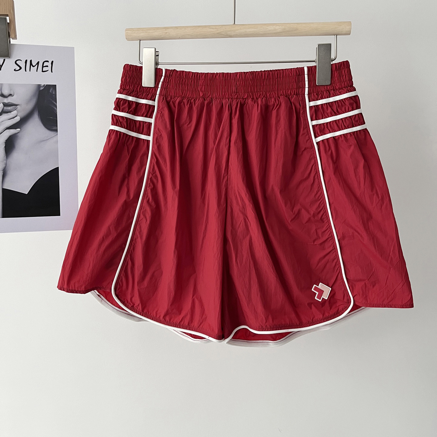 재고 옥 같은 스타일의 빨간색 야외 짧은 코트 허리 반바지 스포츠 세트 여름 세트 착용
