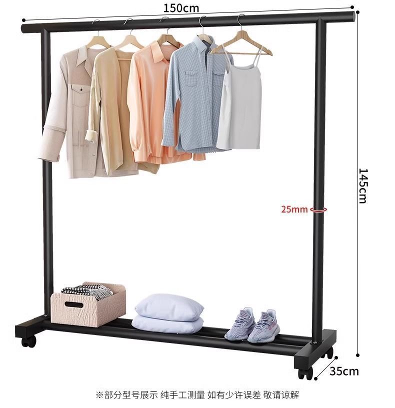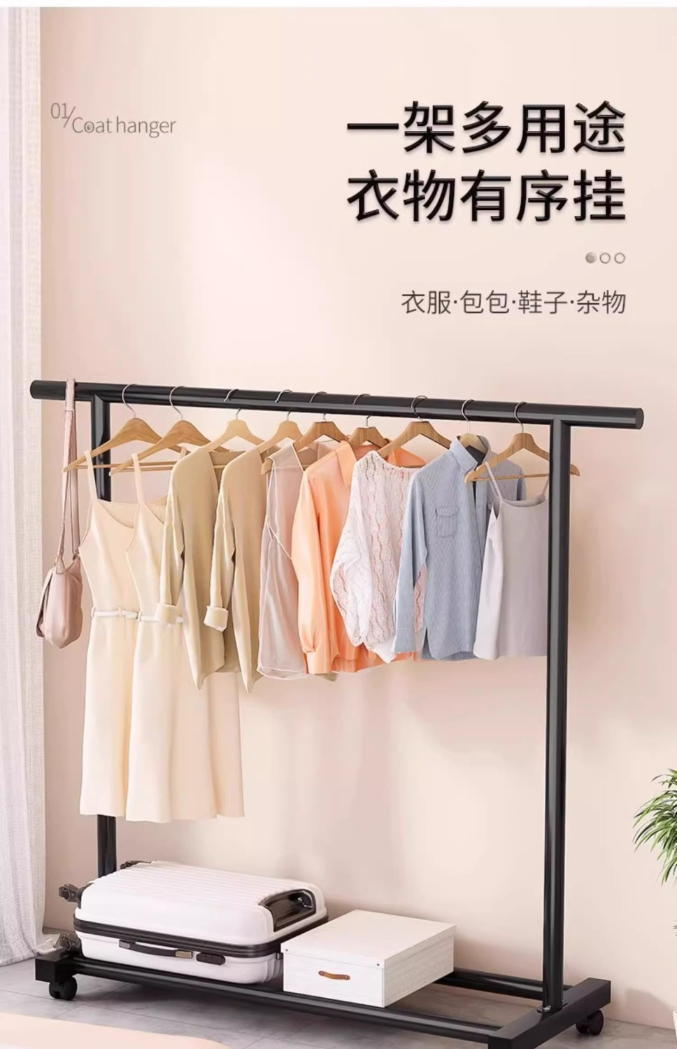 가정용 침실 옷 걸이용 바닥 스탠딩 옷 건조대 접이식 단일 막대 간단한 실내 기숙사 모바일 옷 건조대스토어 가기