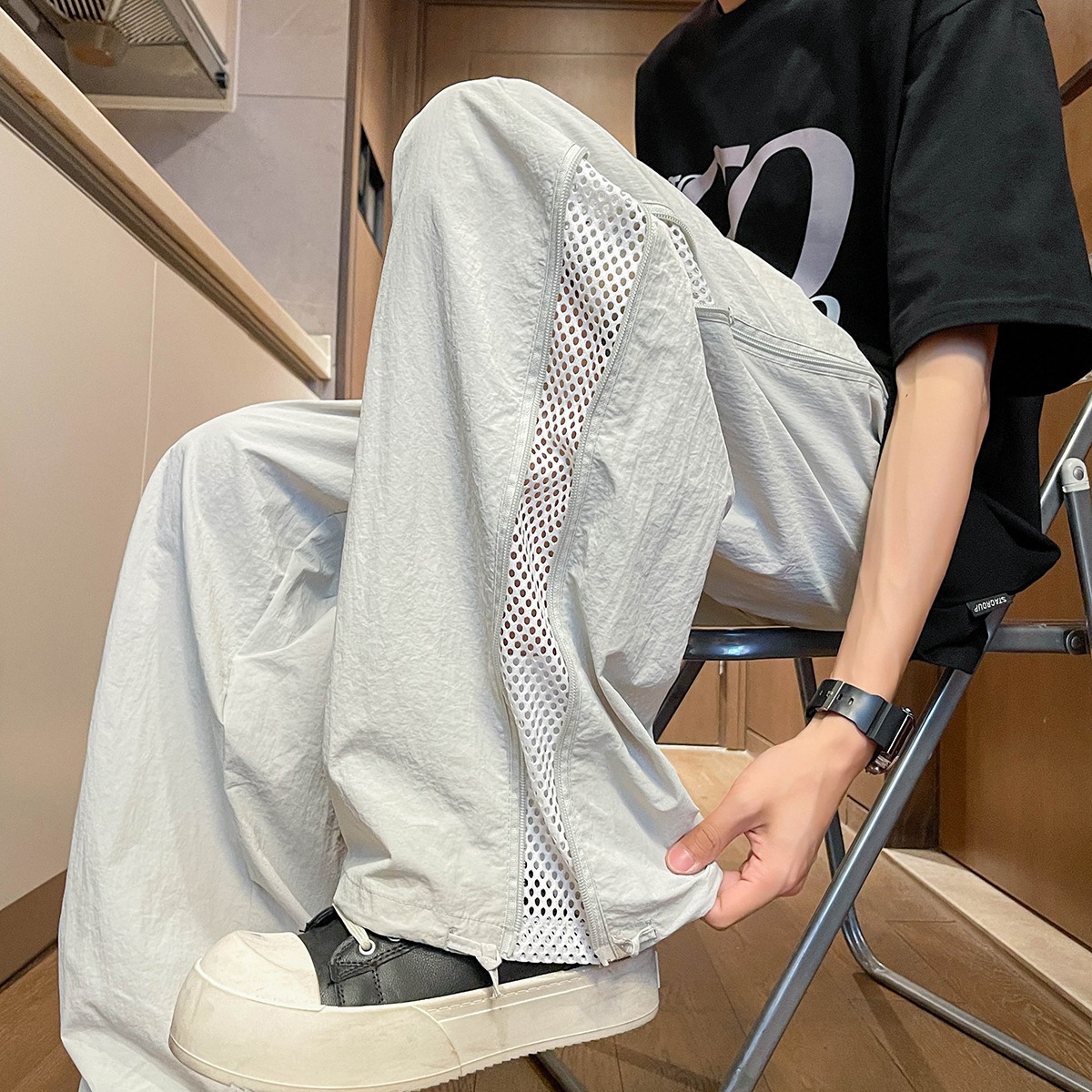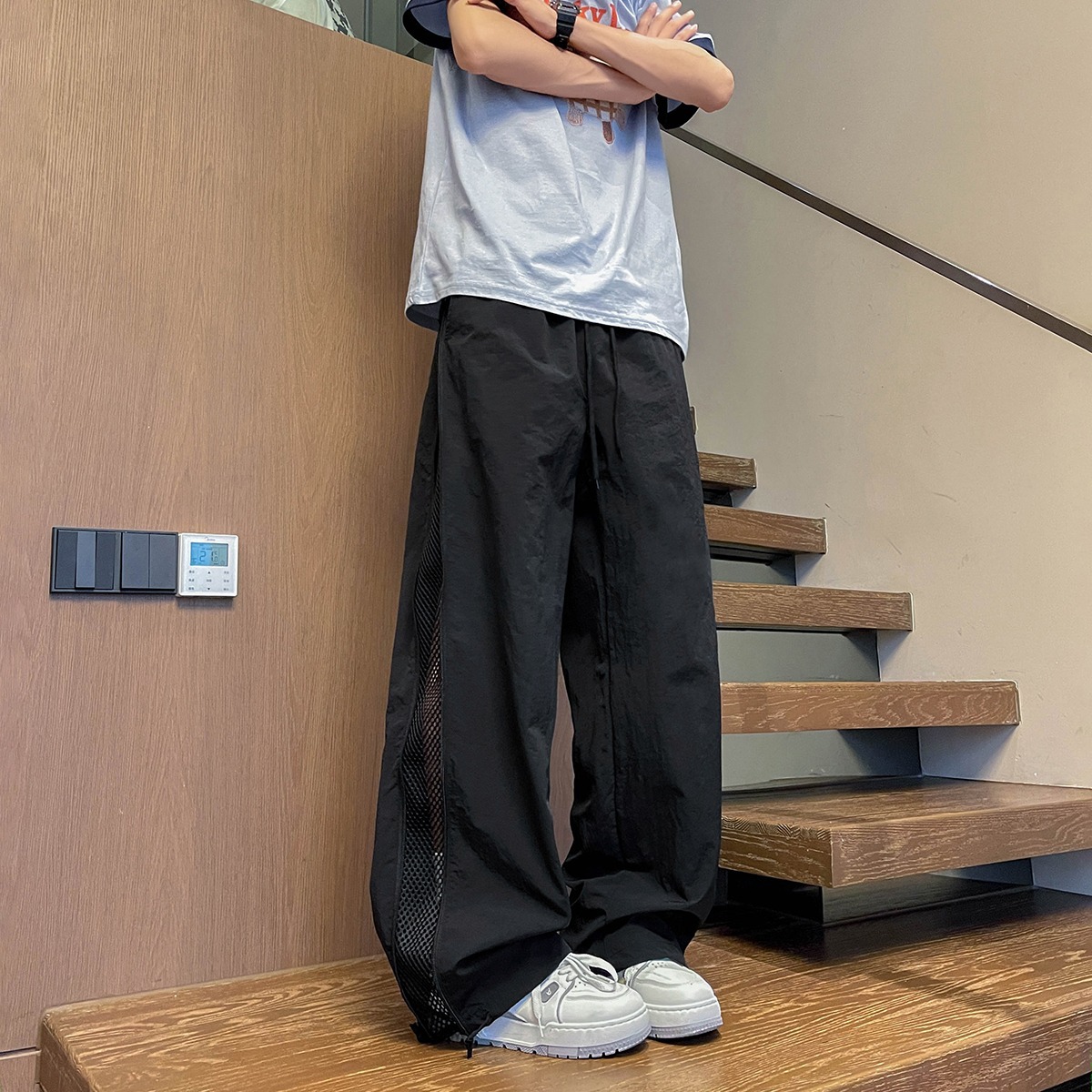 가을 트렌디 아메리칸 아웃도어 등산 바지 남성용 메쉬 통기성 속건 낙하산 바지 루즈 스트레이트 캐주얼 바지