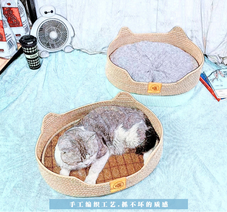 국경 간 등나무 고양이 둥지 사계절 유니버설 여름 통기성 고양이 둥지 고양이 침대 고양이 스크래치 보드 둥지 고양이 소파 잠자는 매트스토어 가기