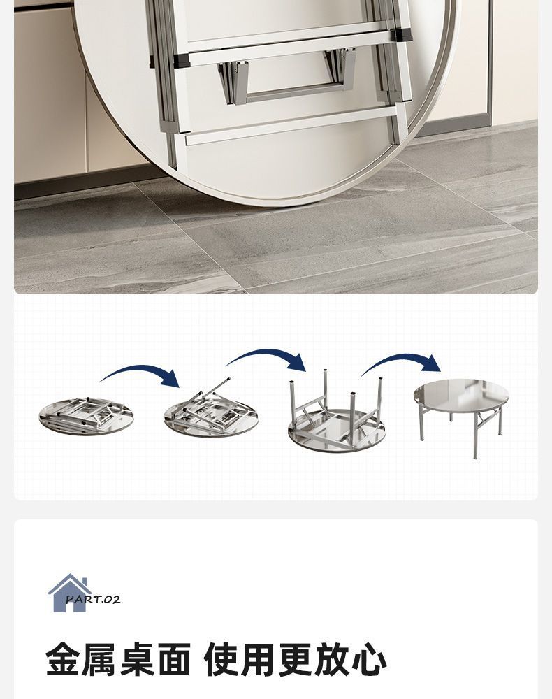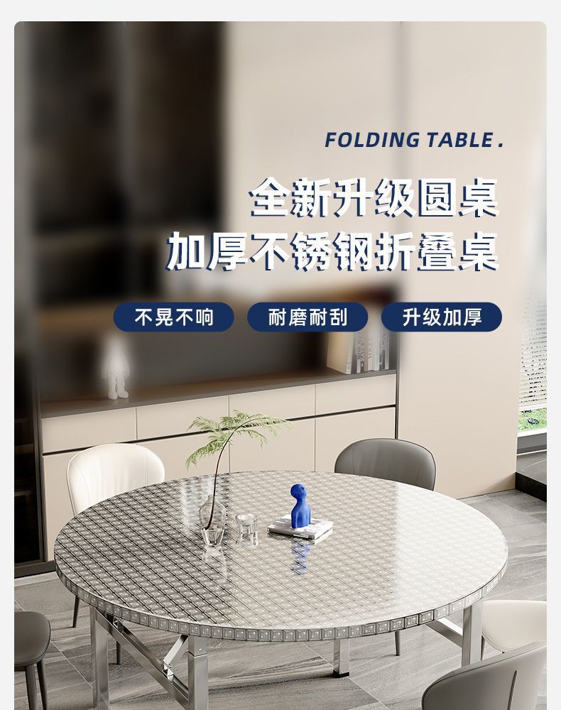 304 스테인레스 스틸 다이닝 테이블 라운드 테이블 접이식 테이블 가정용 기숙사 렌탈 룸 호텔 다이닝 테이블 테이블 스톨 휴대용스토어 가기