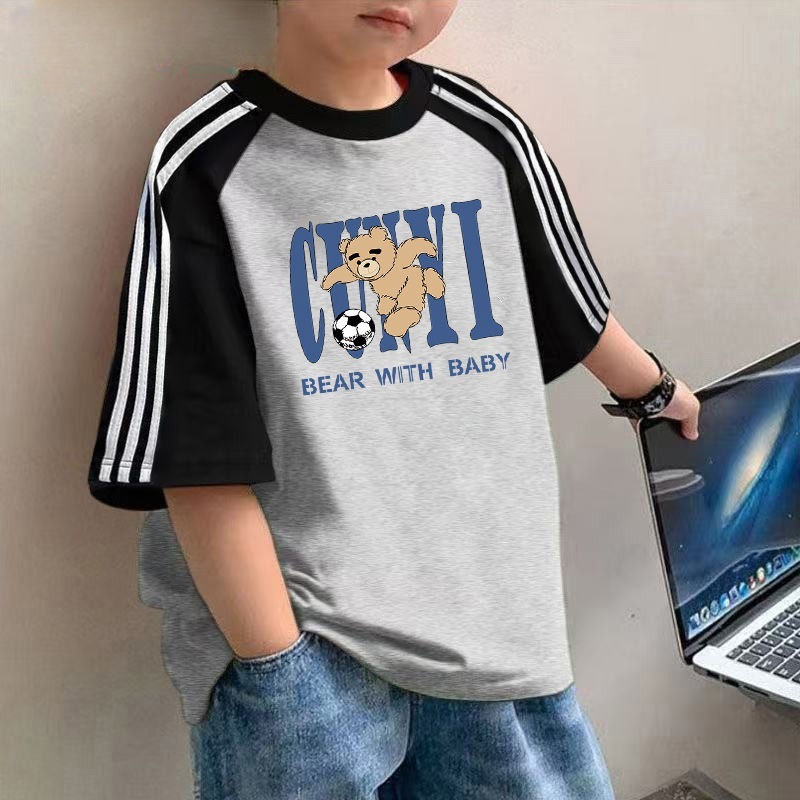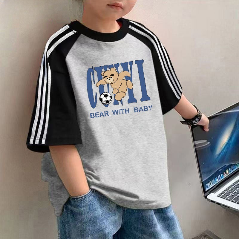 100% 퓨어 코튼 베이비 컬러 블록 반팔 티셔츠 소년 소녀 여름 새로운 유행 탑스토어 가기