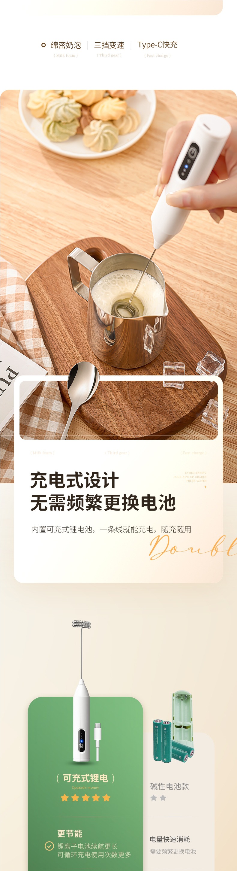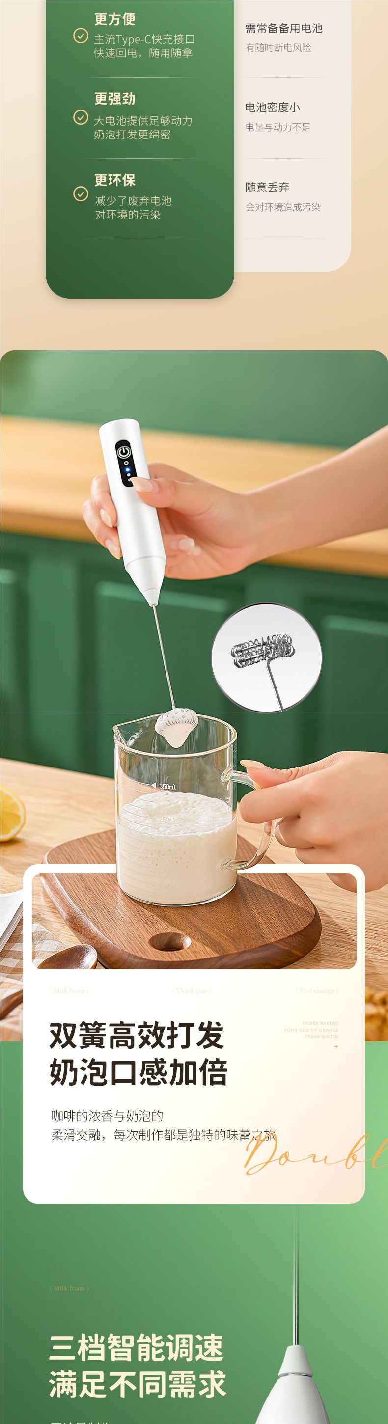 • .✩✩✩✩KD306 화이트 우유 거품기 더블 스프링 스틱 영어 버전(3단계)✩✩✩✩