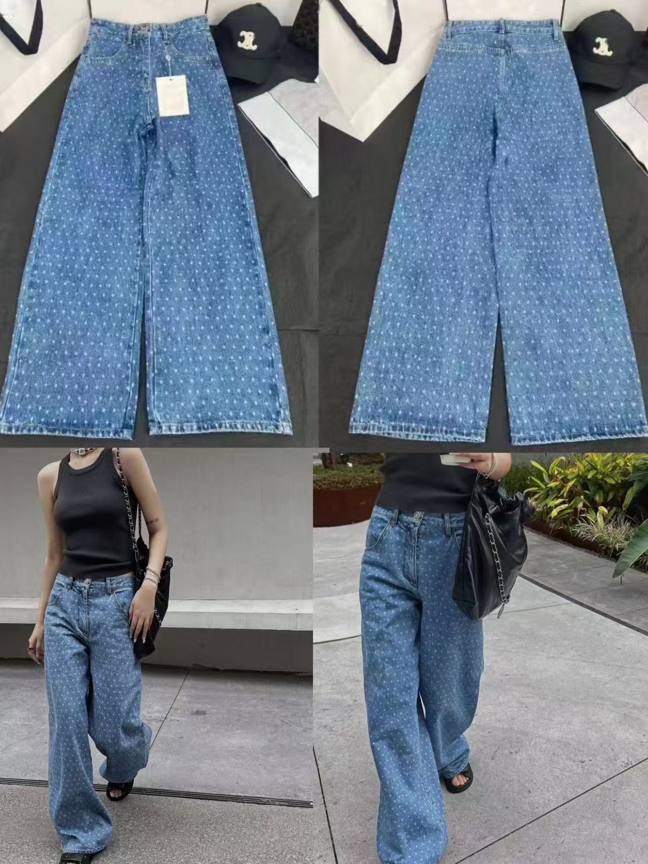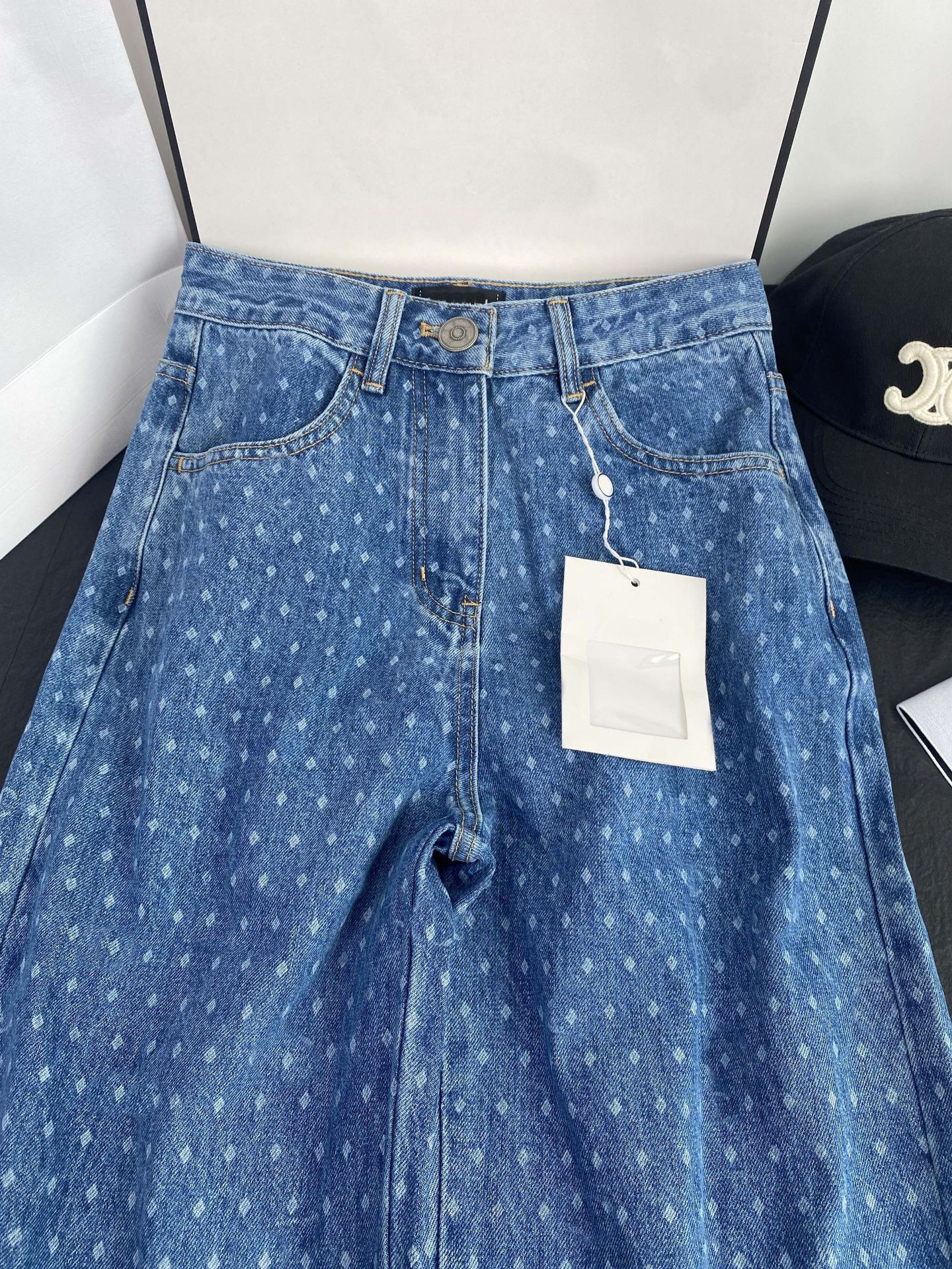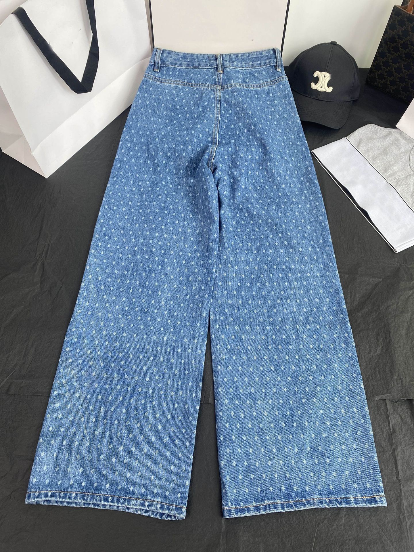 남유 고급 25유럽풍 샤넬풍 레이저 물방울 무늬 더블C 하이웨이스트 루즈핏 와이드 레그 롱진 여성용스토어 가기