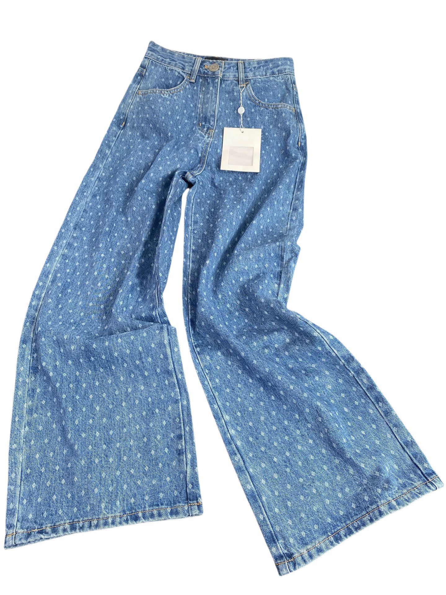 남유 고급 25유럽풍 샤넬풍 레이저 물방울 무늬 더블C 하이웨이스트 루즈핏 와이드 레그 롱진 여성용