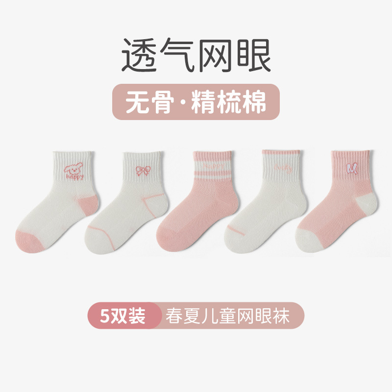 여름 아기 양말 소년과 소녀를위한 얇은 면화 중간 튜브 양말 소녀 메쉬 통기성 학생 양말 어린이스토어 가기
