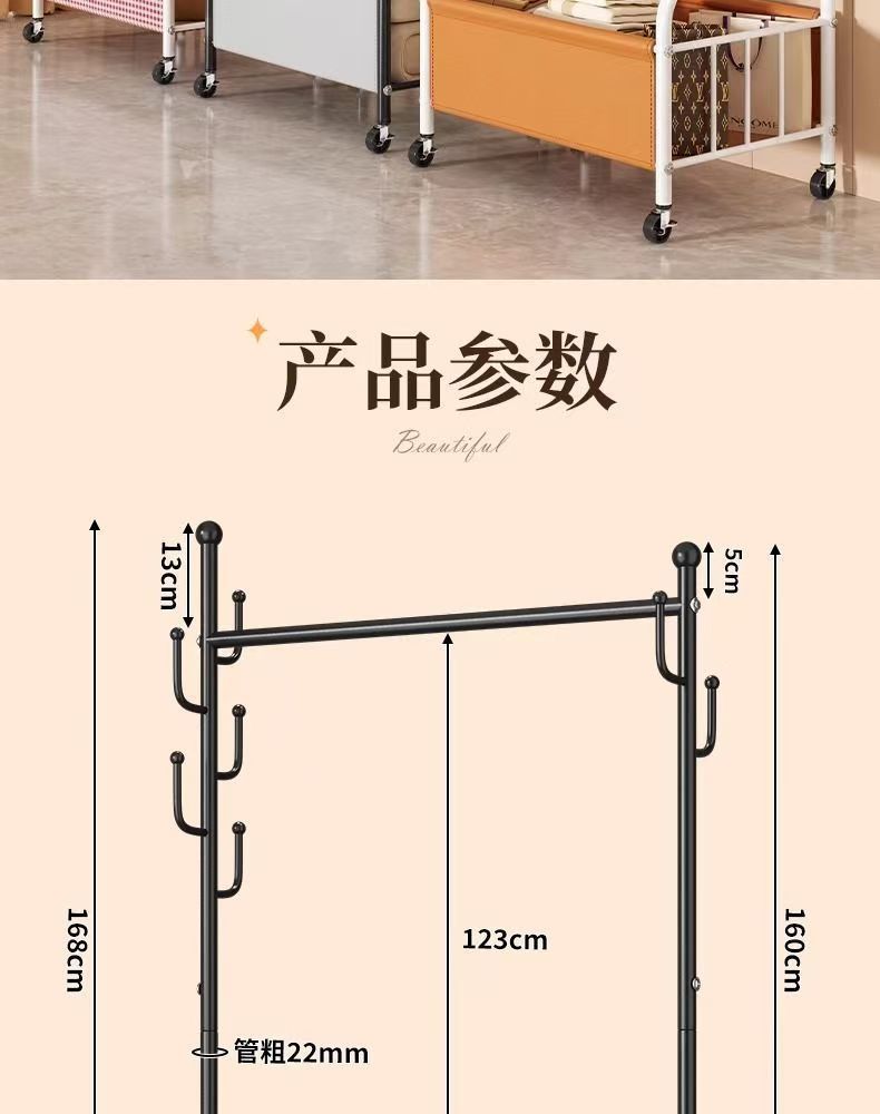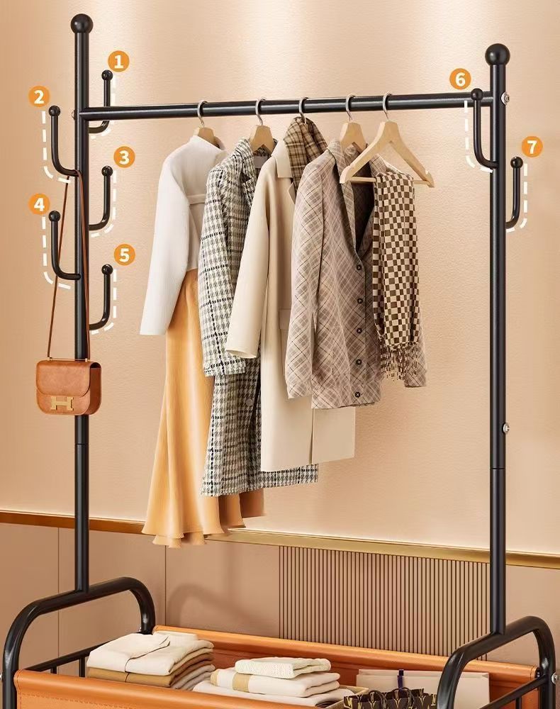 코트 랙 바닥 스탠딩 수직 이동식 두꺼운 옷 걸이 홈 침실 보관 옷 걸이 발코니 옷 건조 랙