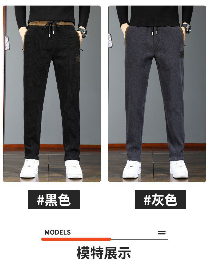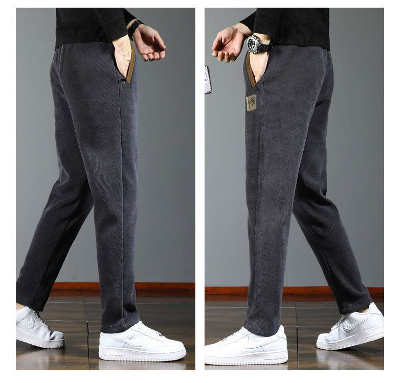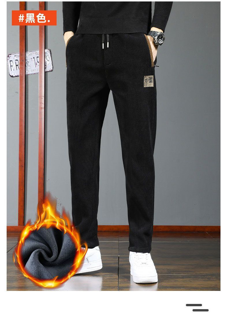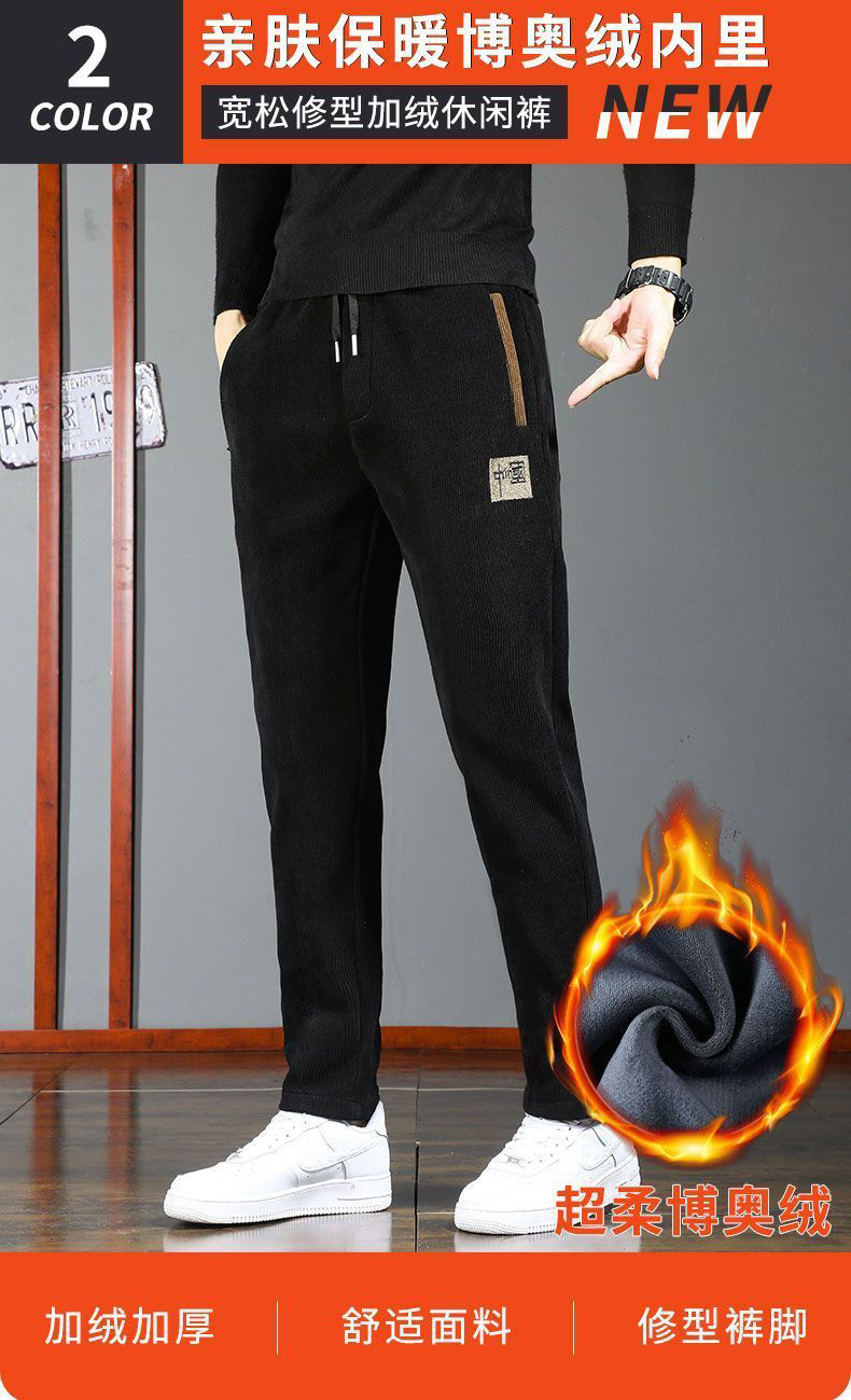 새로운 캐주얼 바지 남자 느슨한 전국 유행 남자 바지 가을과 겨울 자수 코듀로이 스포츠 바지 기모 스트레이트 바지스토어 가기