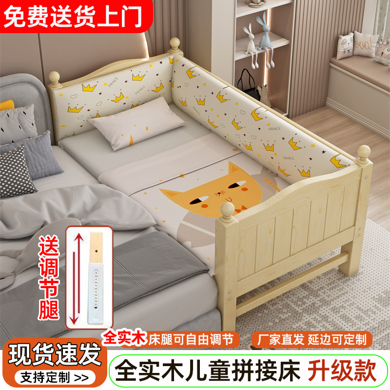 난간을 가진 단단한 나무 유아 접합 침대 소년 소녀 싱글 침대 아기 작은 침대 큰 침대스토어 가기