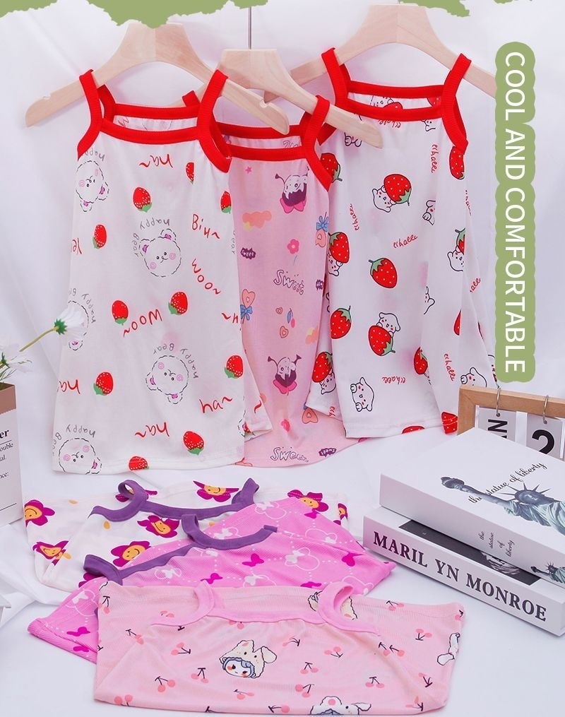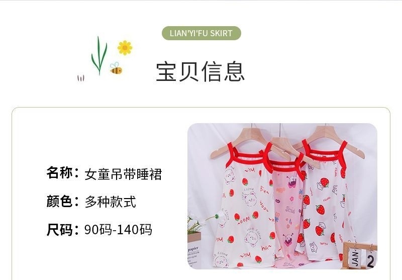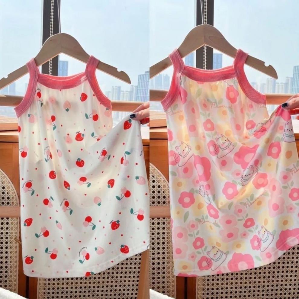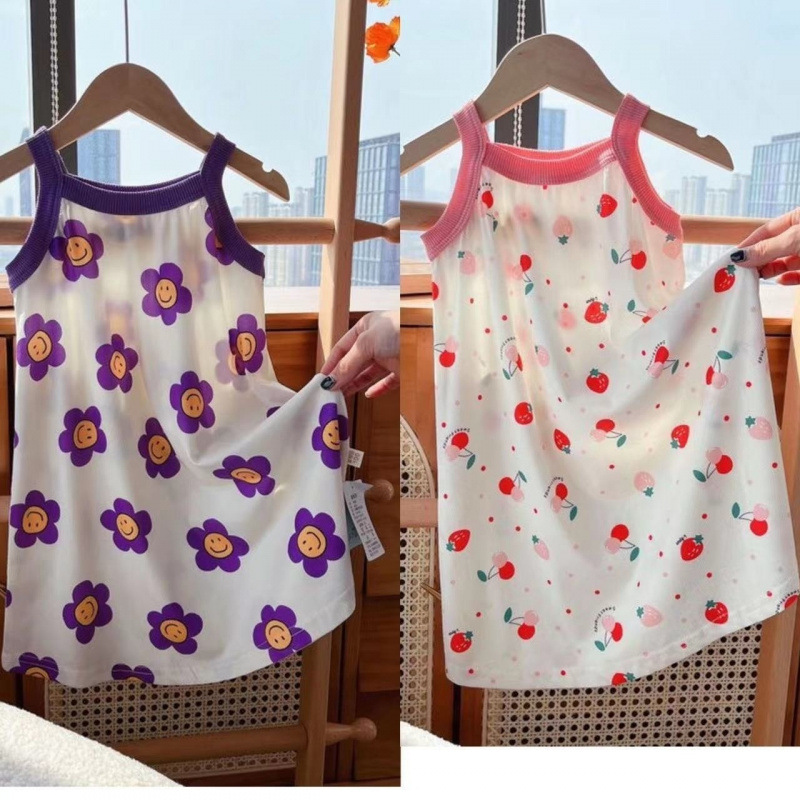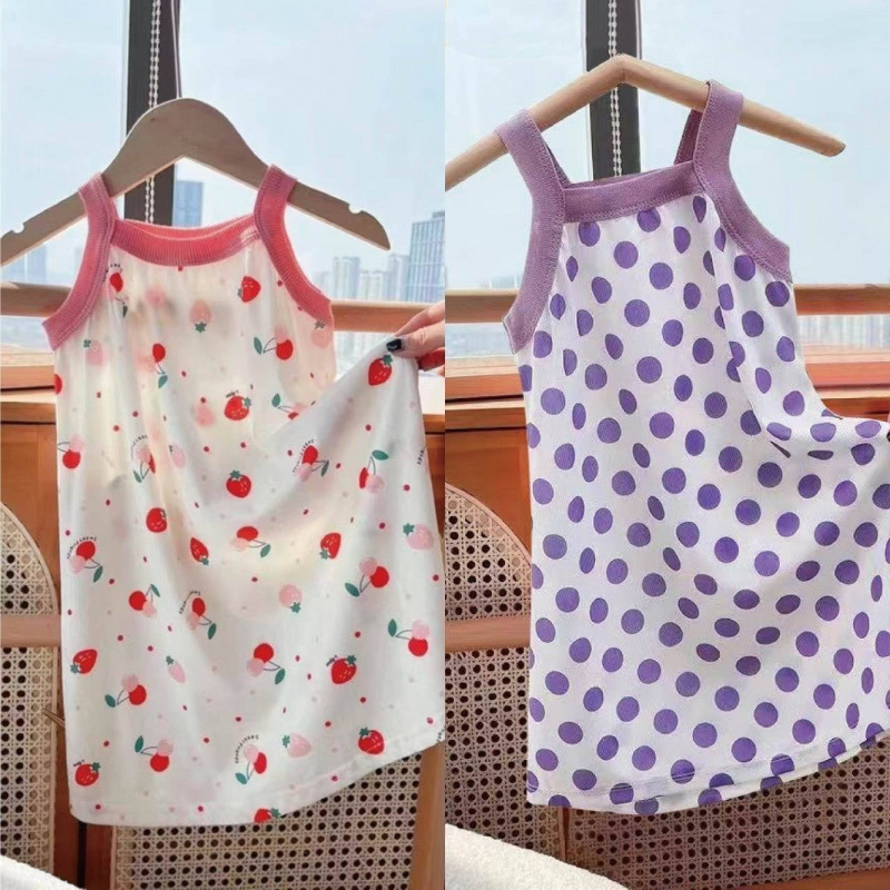 여자 잠옷 얼음 실크 여름 공주 드레스 어린이 얼음 실크 얇은 잠옷 아기 소녀 서스펜더 스커트 홈 의류스토어 가기