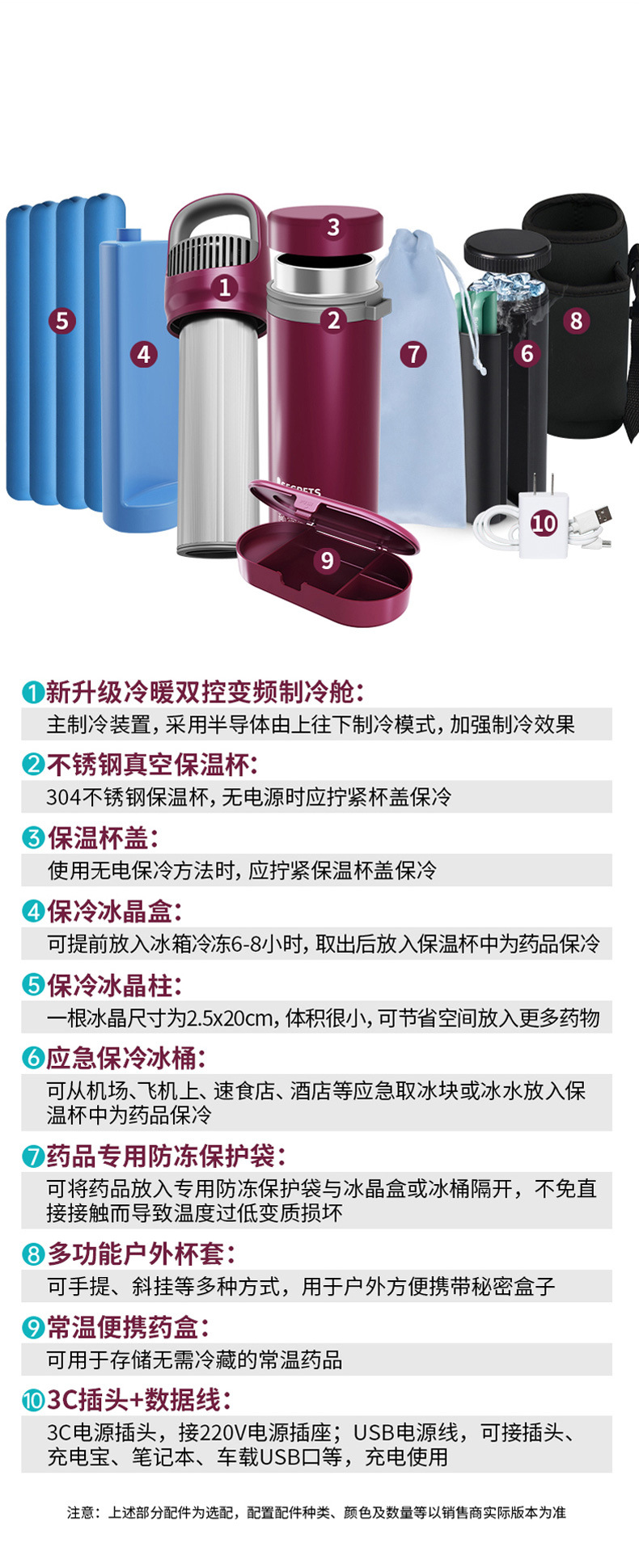 • 5세대 핸들 프로-레드 [온냉 이중 제어] 항온 2-8 ℃ +컵 커버+보조 배터리