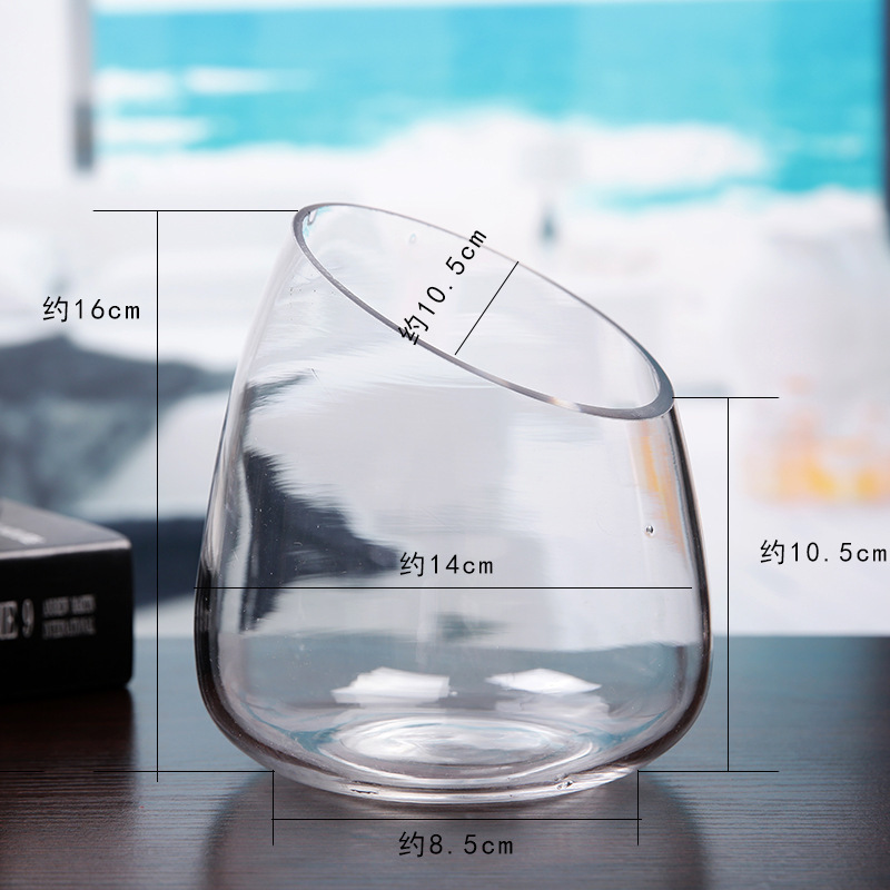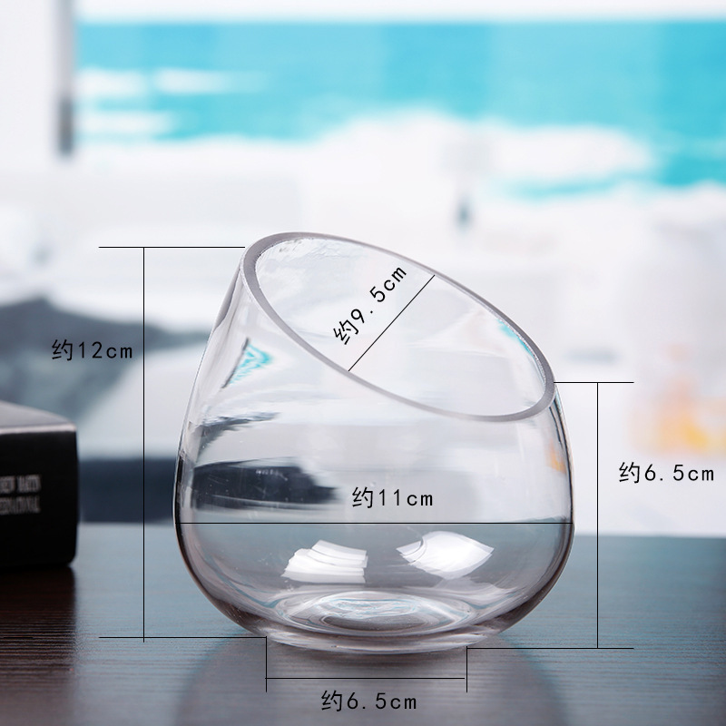 창의적인 경사진 구형 유리 디핑 샐러드 그릇 촛대 유리 꽃병 다육 화분 투명 수경 마이크로 풍경