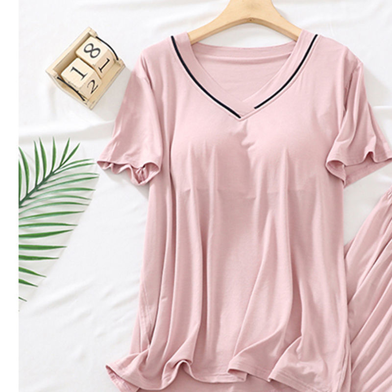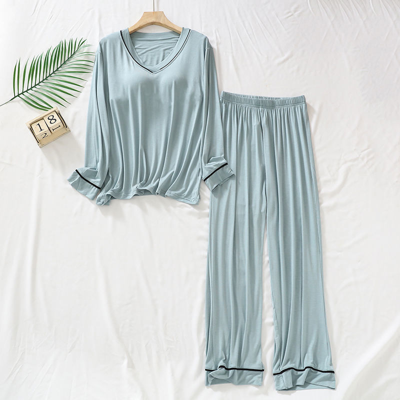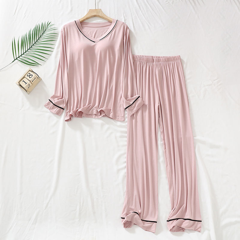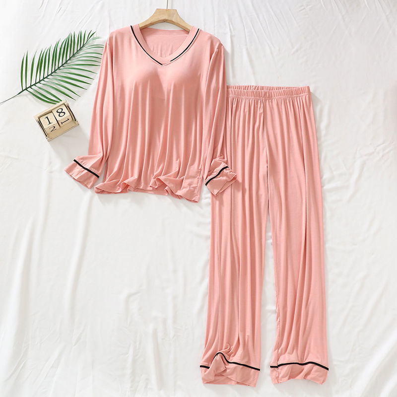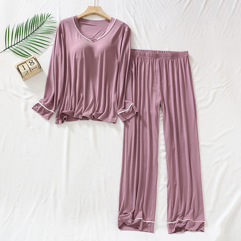 2025 년 모달 여성 브이넥 파자마, 가슴 패드 가을과 겨울 중년 및 노인 어머니 긴 소매 바지 홈 의류 세트
