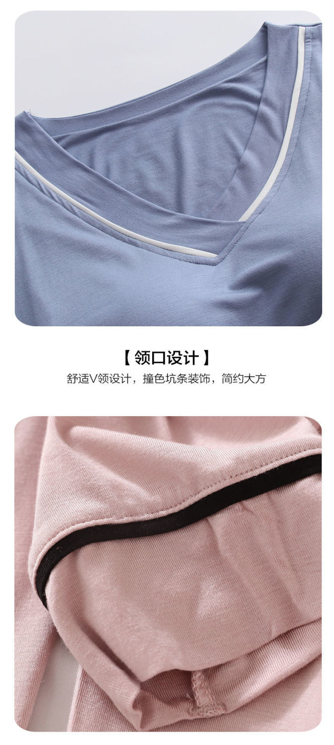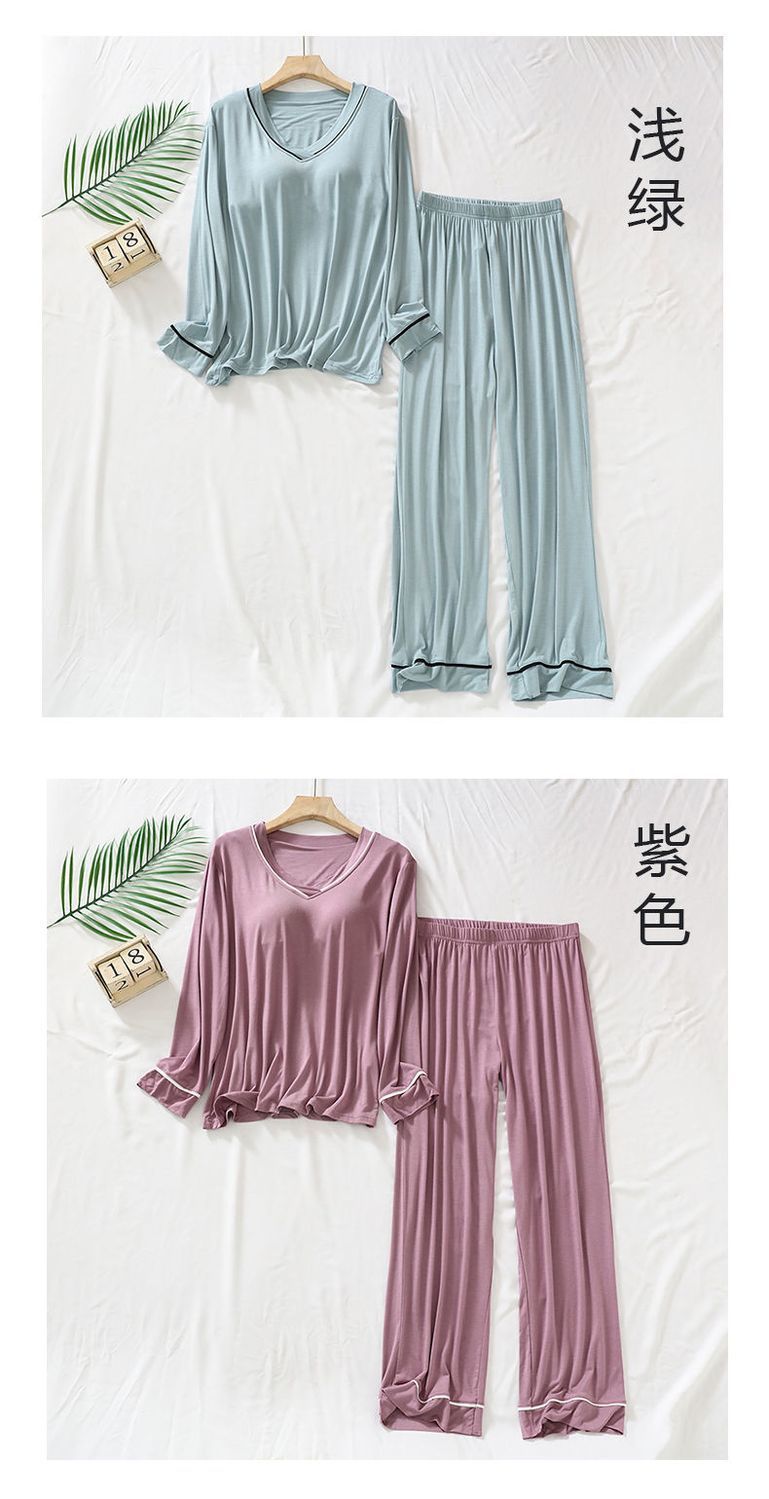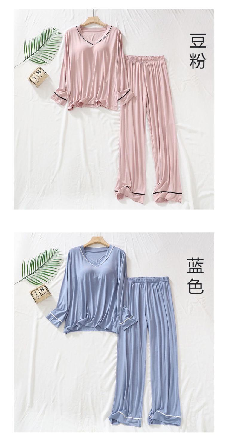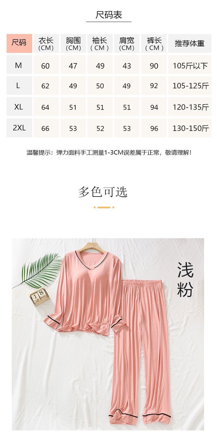 2025 년 모달 여성 브이넥 파자마, 가슴 패드 가을과 겨울 중년 및 노인 어머니 긴 소매 바지 홈 의류 세트스토어 가기