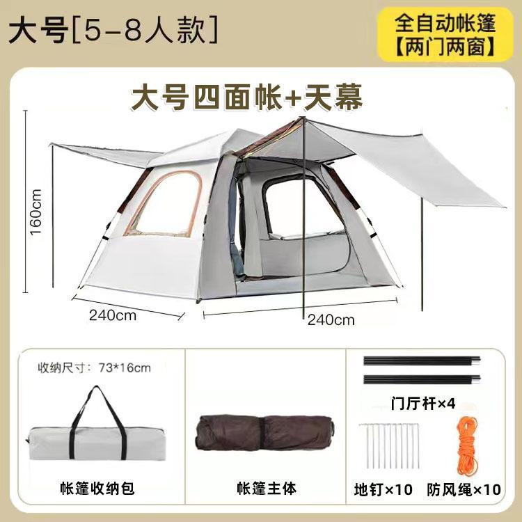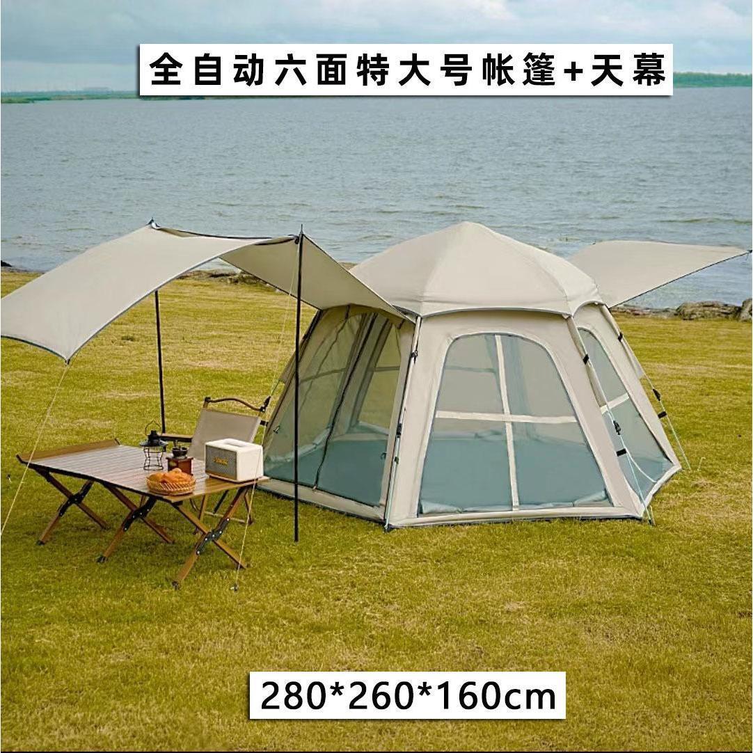 텐트 캐노피 2 대 1 야외 휴대용 접이식 캠핑 장비 텐트 외부 두꺼운 실버 코팅 자외선 차단제 캠핑의 전체 세트스토어 가기