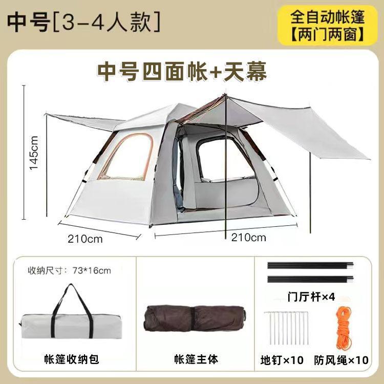 텐트 캐노피 2 대 1 야외 휴대용 접이식 캠핑 장비 텐트 외부 두꺼운 실버 코팅 자외선 차단제 캠핑의 전체 세트