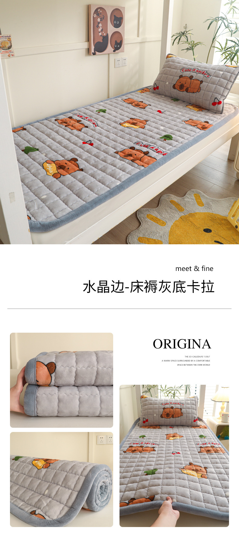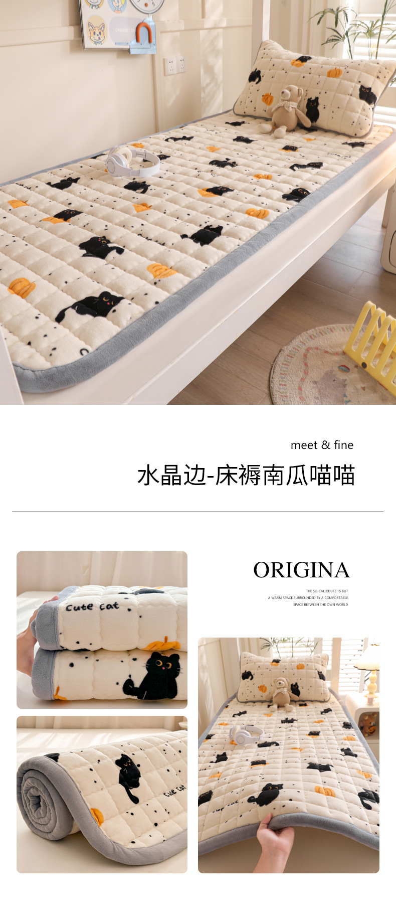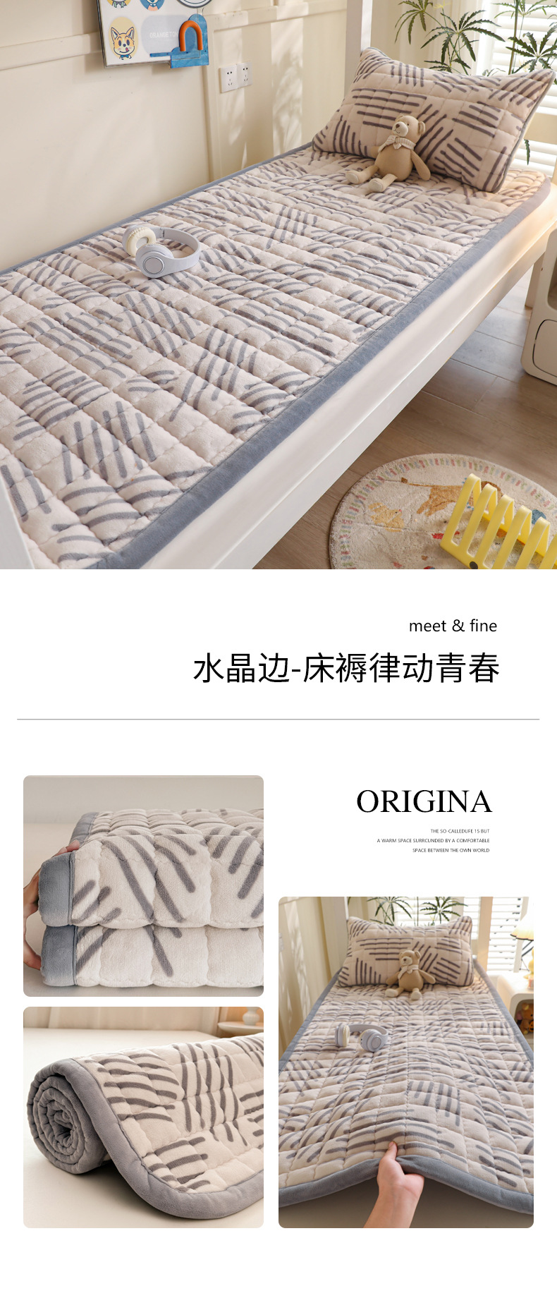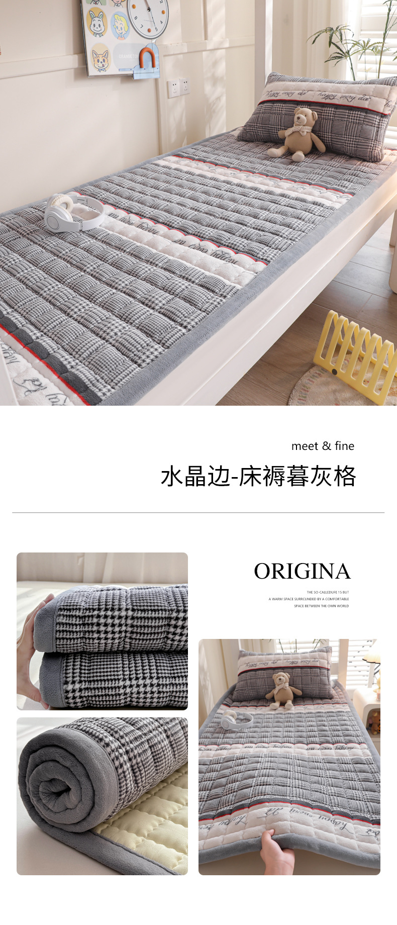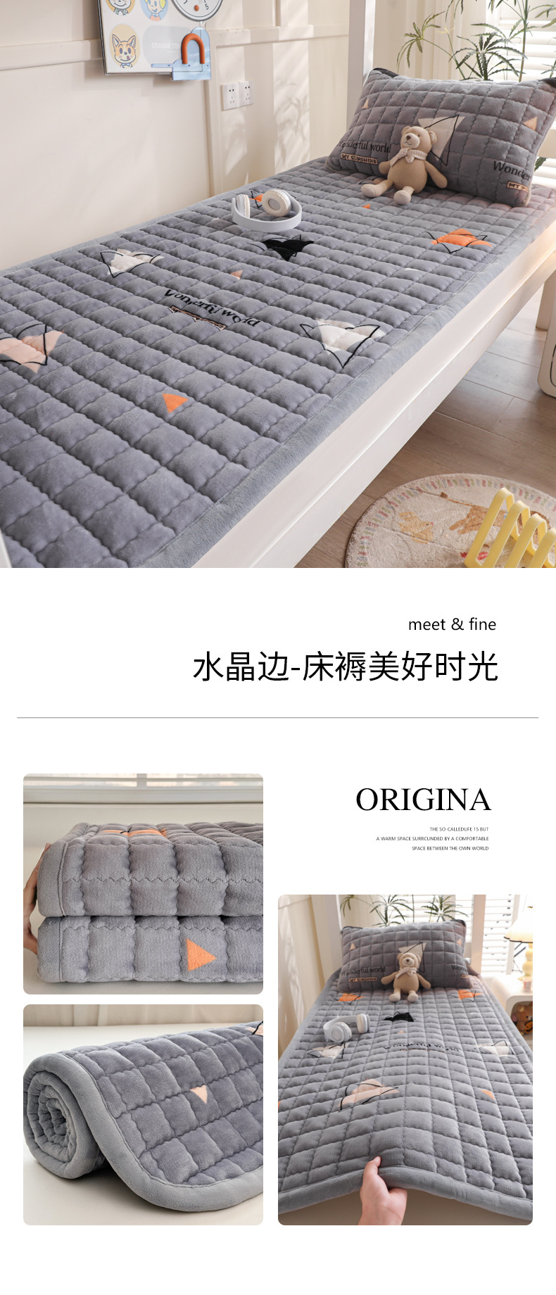• 싱글 매트리스 150*200 [두꺼운 밀크 벨벳, 누빔 충전재, 넓어진 모서리]