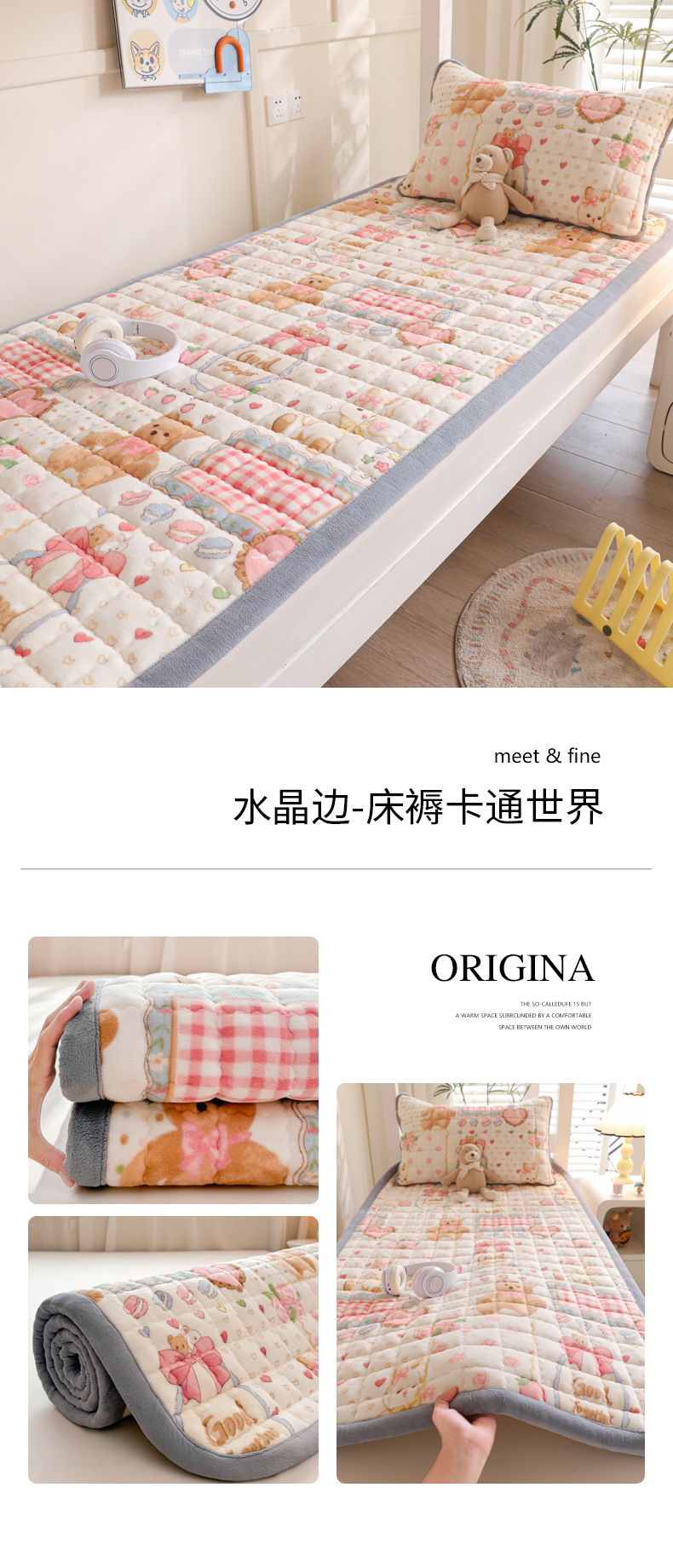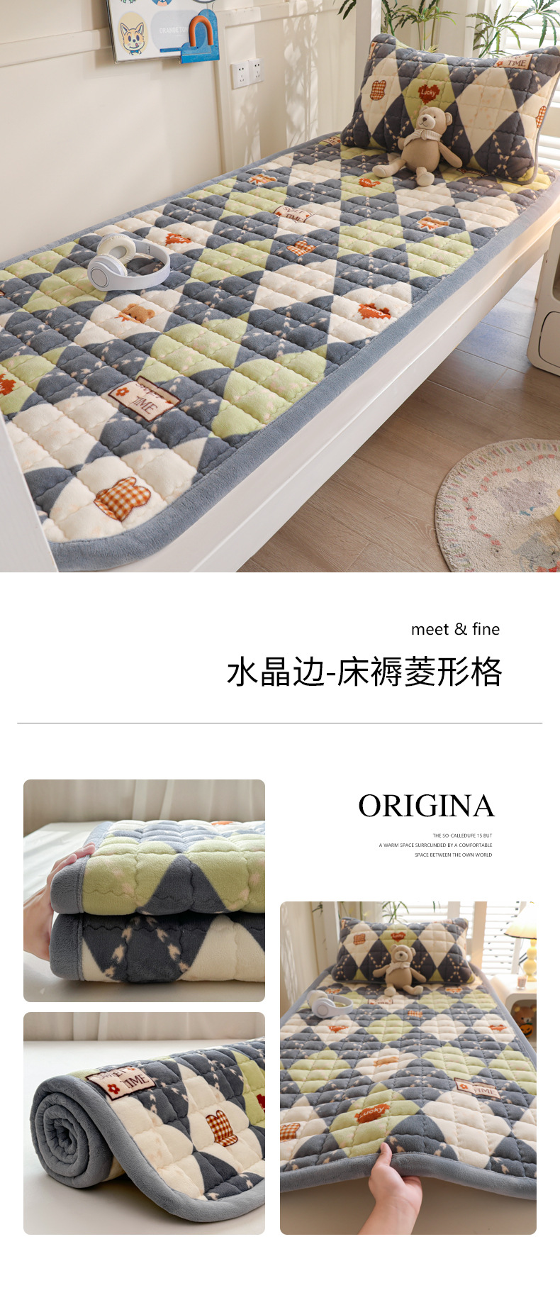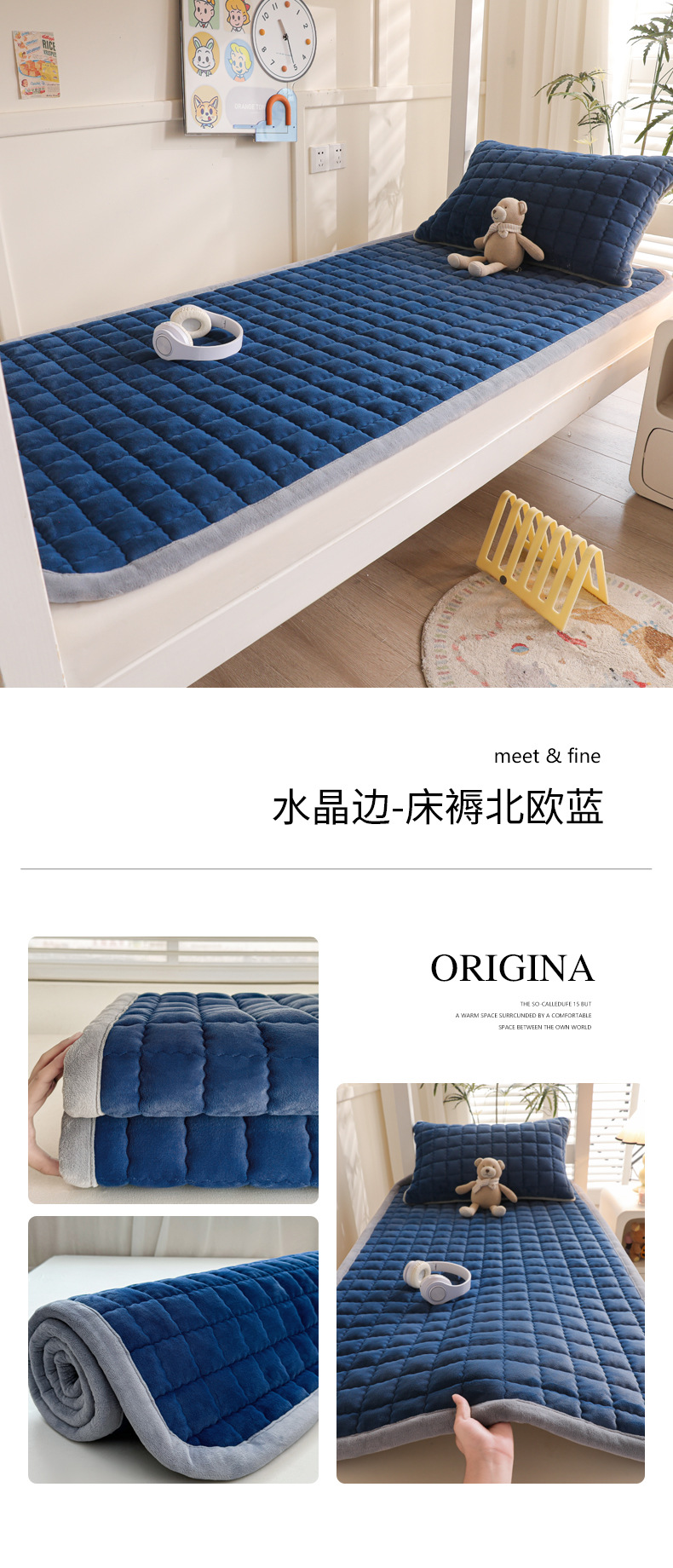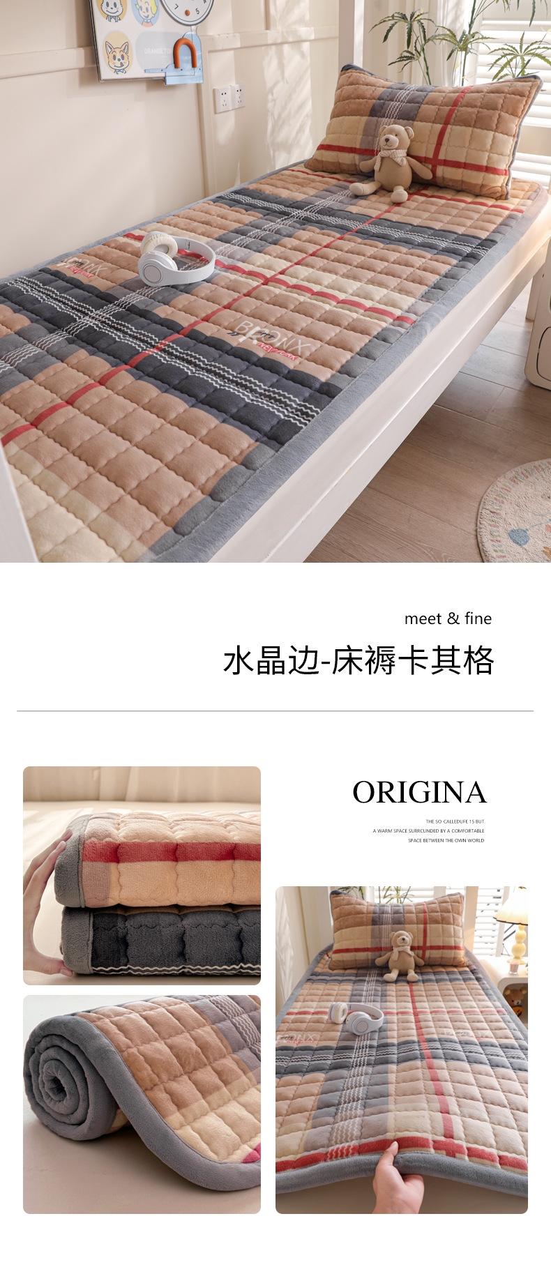 • 싱글 매트리스 150*200 [두꺼운 밀크 벨벳, 누빔 충전재, 넓어진 모서리]
